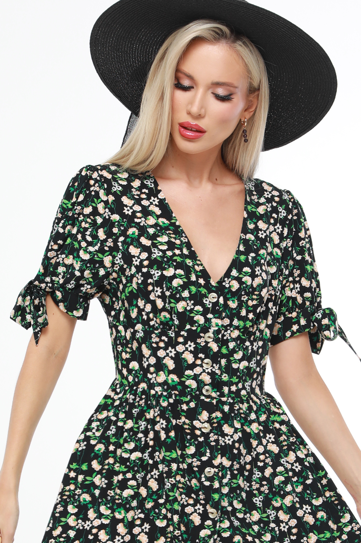 Платье для летнего сезона выполнено из легкой и дышащей вискозы, что обеспечивает комфорт в жаркую погоду. Материал мягкий на ощупь и обладает хорошей воздухопроницаемостью, что делает платье идеальным для повседневной носки в теплое время года. Модель платья имеет полуприлегающий силуэт, который подчеркивает фигуру, не стесняя движений и обеспечивая свободу и комфорт при носке. V-образный вырез горловины добавляет модели элегантности и визуально вытягивает силуэт, делая его более изящным. Короткие рукава придают платью легкость и удобство, а декоративные завязки на рукавах служат стильным акцентом, который привлекает внимание и добавляет образу игривости. Платье имеет разрез спереди, что добавляет нотку смелости и динамичности в общий дизайн. Эта деталь не только улучшает внешний вид изделия, но и повышает его функциональность, обеспечивая большую свободу движений. Застегивается платье на пуговицы, что делает его удобным в использовании. Для сохранения первоначального вида платья и продления срока его службы рекомендуется бережная стирка при температуре 30 градусов. Такой уход позволит ткани сохранять свою мягкость и цвет на долгое время, а также предотвратит возможную деформацию изделия.