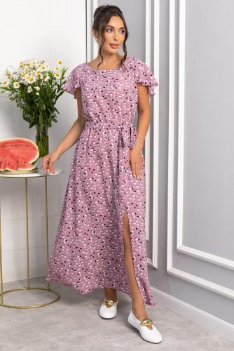Воздушное, нежное платье А-силуэта подчеркнёт женственность и грацию! В комплект входит пояс из основной ткани, которым можно выделить талию. Это платье идеально подойдет для летнего сезона, но также будет актуально и тёплой осенью и весной. Рукава скроены по типу «крылышко». Вырез горловины V-образный.