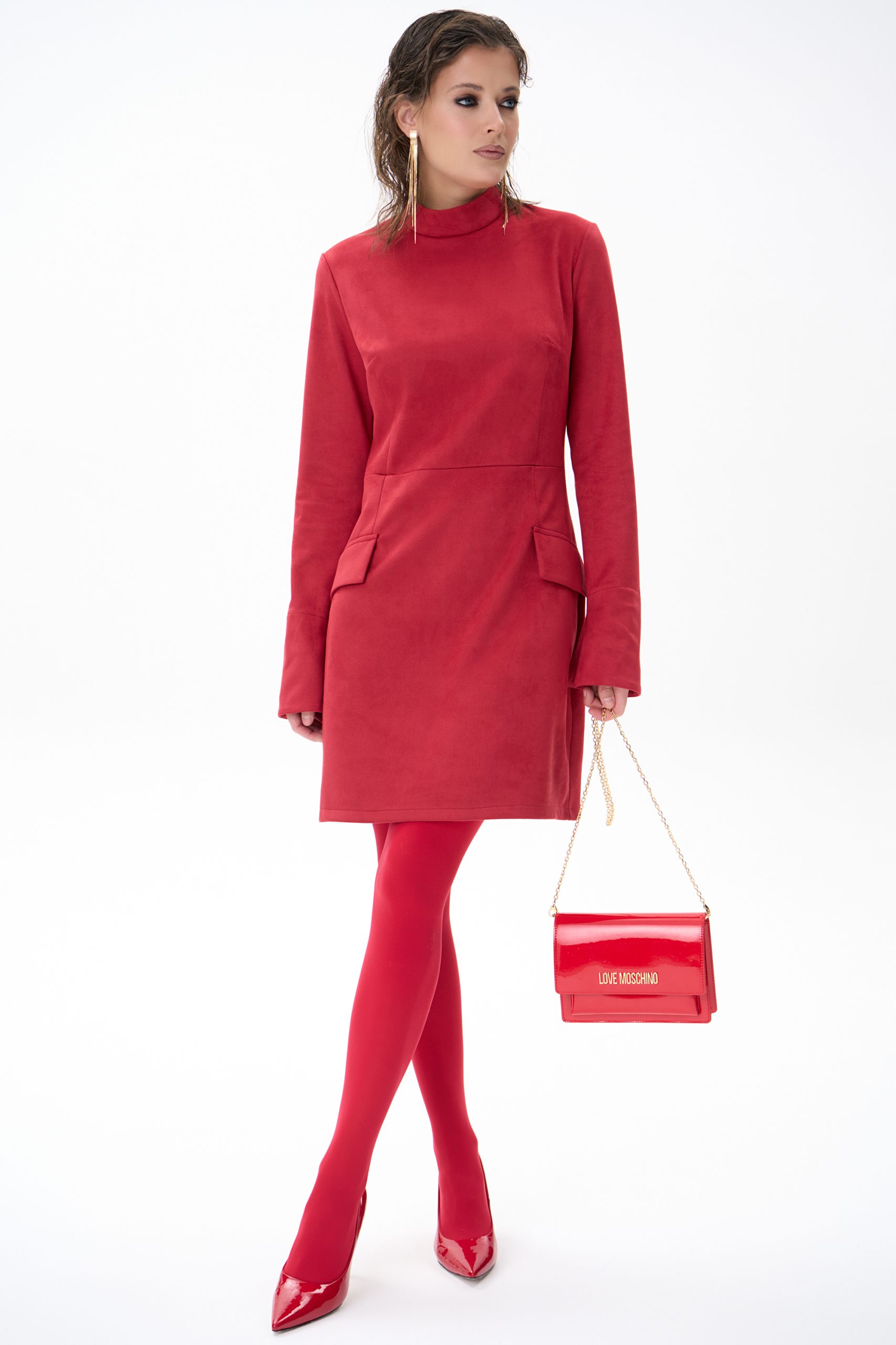 Элегантное винтажное платье с длинными рукавами и воротником-стойкой — идеальный выбор которые хотят подчеркнуть стиль и уверенность. Модель выполнена в лаконичном силуэте с декоративными элементами в области талии и имитацией карманов, что визуально формирует красивый силуэт и подчеркивает женственность.