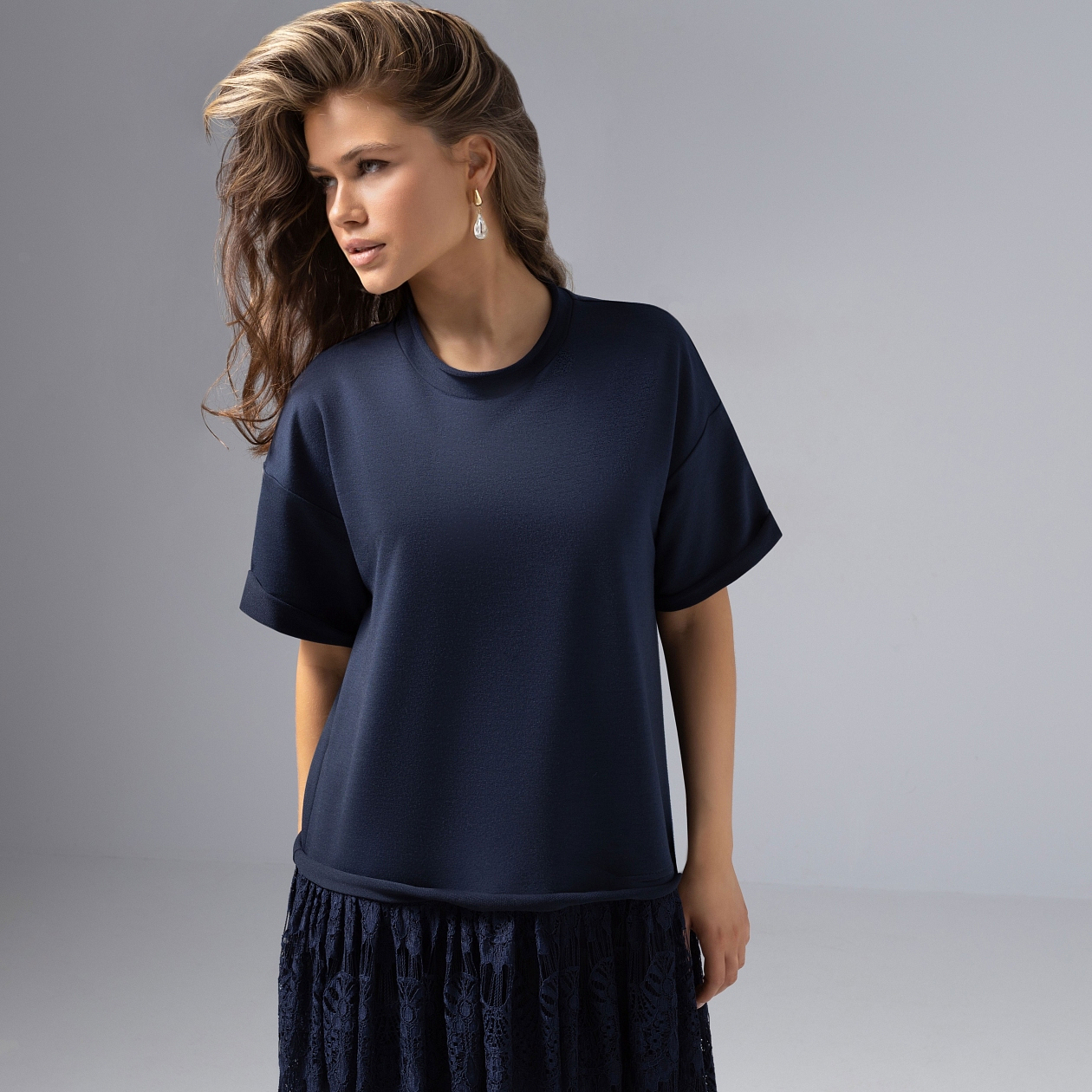 Состав: Трикотаж «футер», кружево, трикотаж подклад (65% п/э, 30% хлопок, 5% спандекс)
