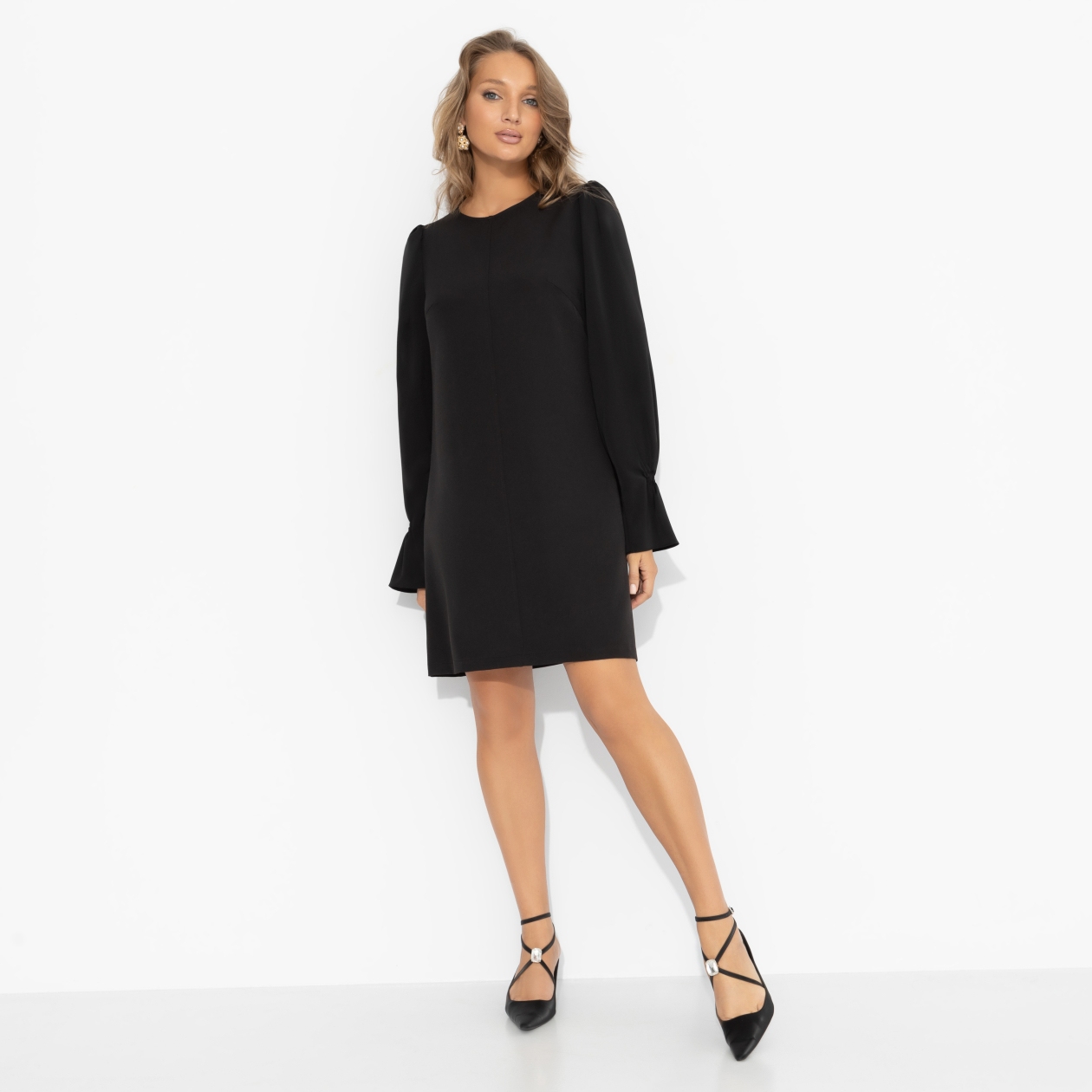 Wow-эффект – будто ты главная героиня выставки современного искусства или стильной недели в Милане. Подчеркни свою индивидуальность через необычную простоту! Простой, прямой силуэт делает образ интеллектуальным и немного загадочным, а объёмные рукава со сборками добавляют скульптурности и модного акцента.