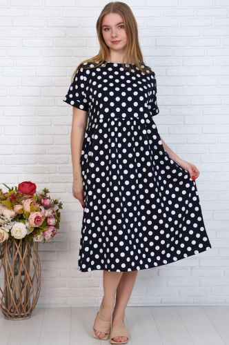 Хлопковое женское платье комфортной длины миди. Модель свободного кроя, с отрезной талией, рукав цельнокроенный, в боковых швах карманы. Пышная юбка придаёт лёгкости, романтики и женственности.