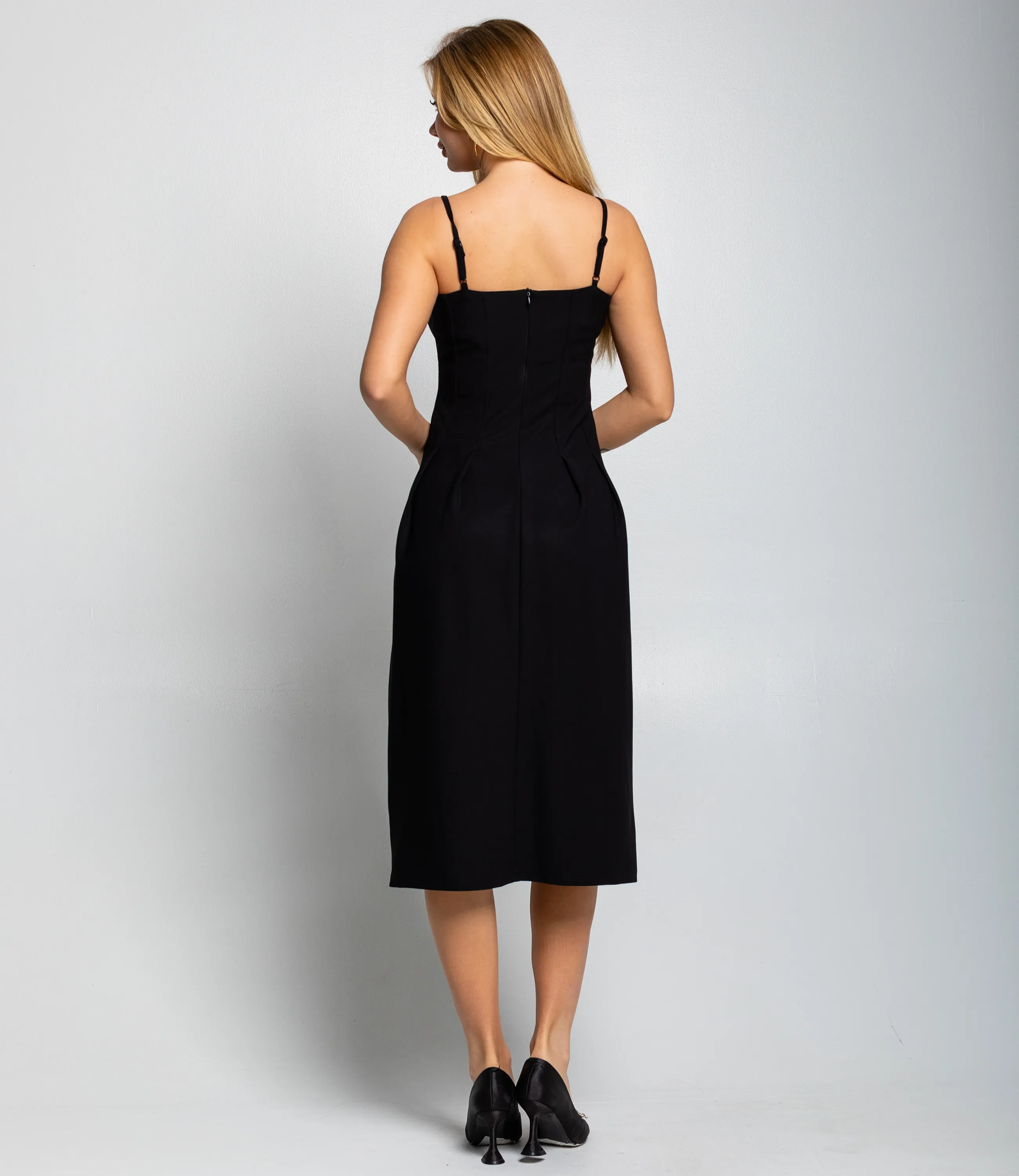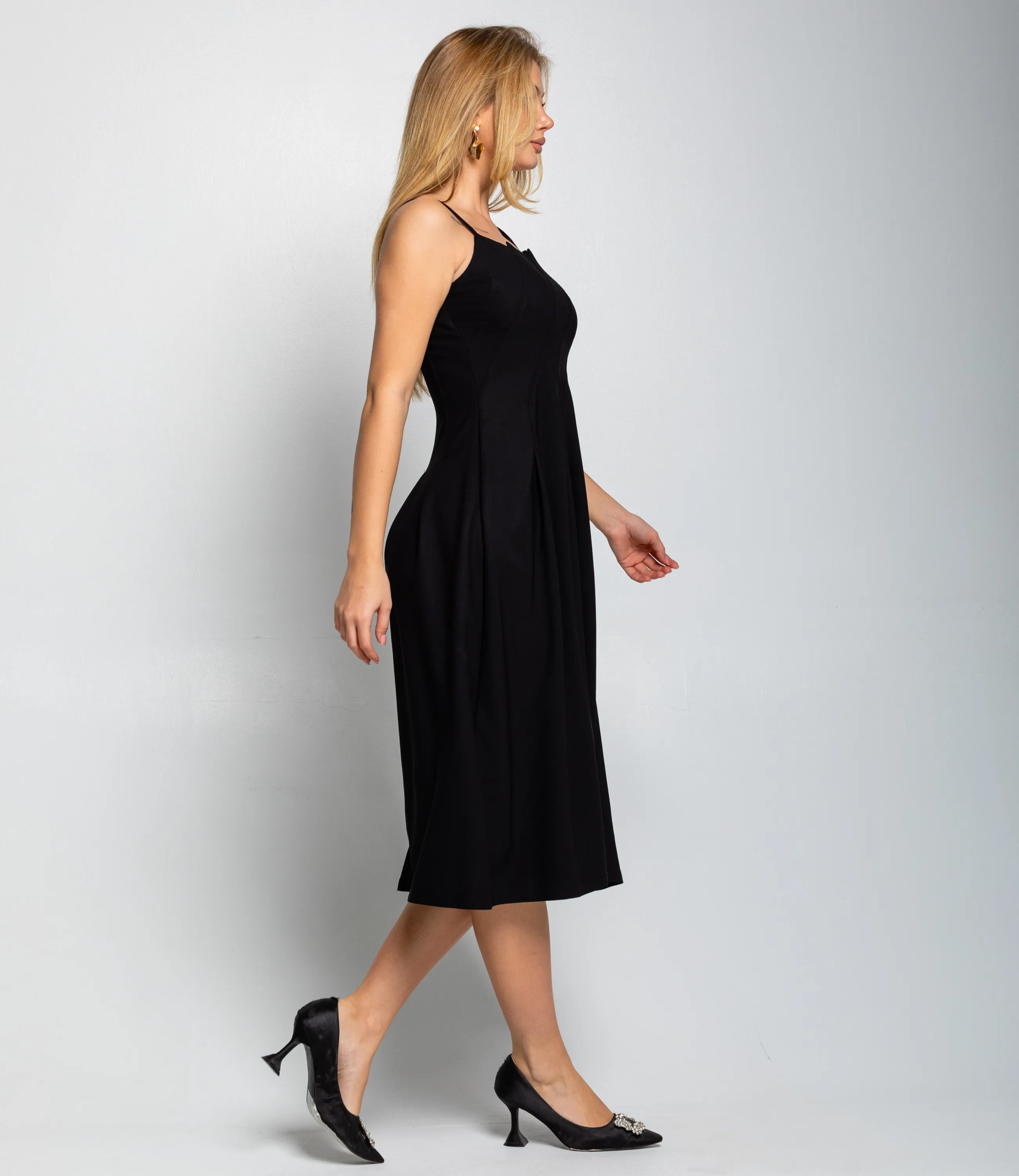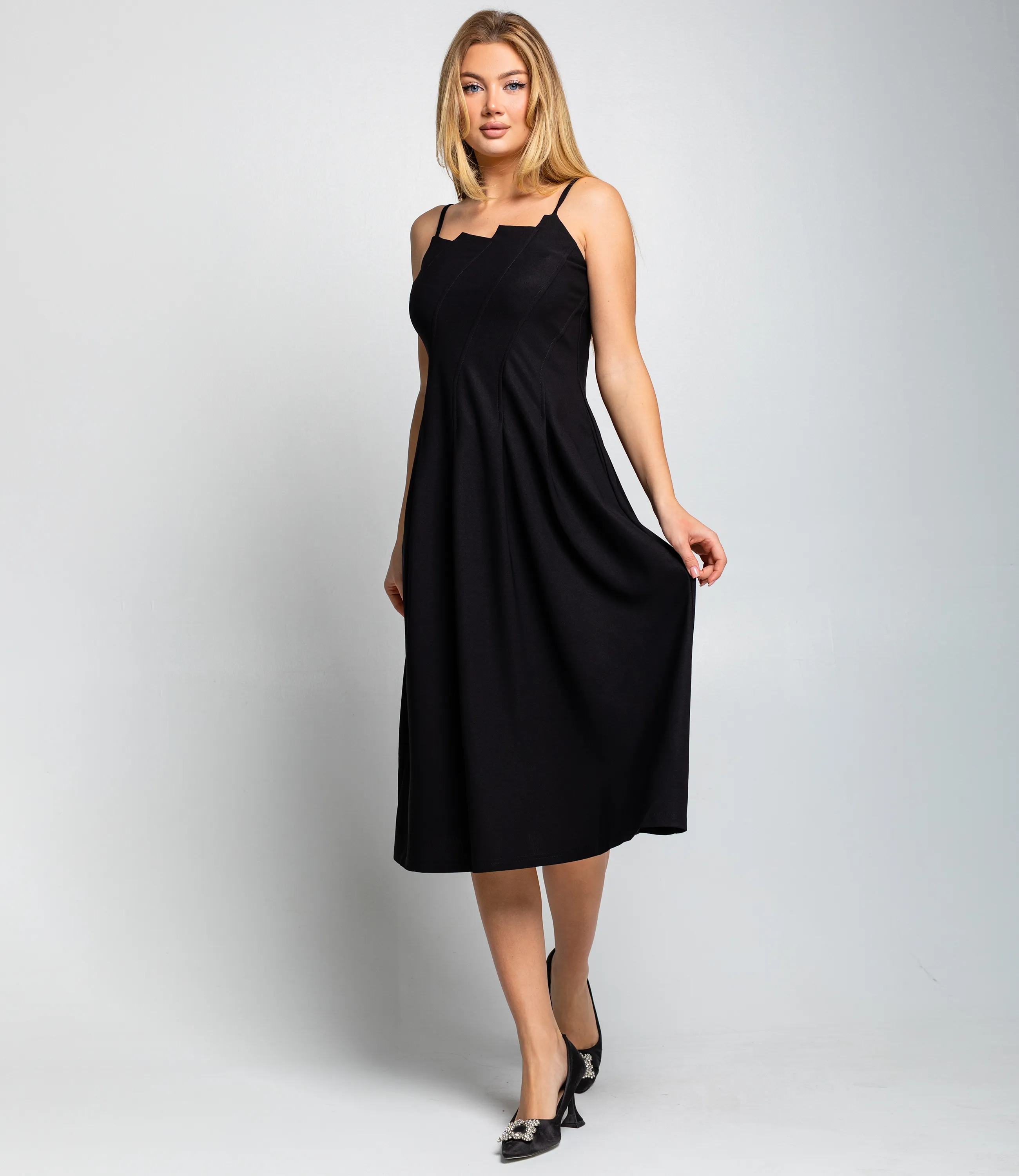 Платье — это часть гардероба, которая подчёркивает женственность каждой женщины.Платье приталенного силуэта с лифом на тонких бретелях и геометрической верхней линией декольте, лиф скроен из нескольких клиньев, формирующих лёгкие рельефы и подчёркивающих талию; талиевая вытачка плавно переходит в юбочную часть, которая расклёшена средней степени и достигает икр, создавая аккуратный объём и свободное движение; передние бантовые или встречные складки у линии талии добавляют мягкие драпировки, боковые швы ровные. Для пошива использована ткань: 95% полиэстер, 5% эластан. При соблюдении рекомендаций по уходу изделие сохраняет форму и цвет после многократных стирок, что снижает вероятность возвратов и важно для розничной торговли. Цвет и фактура соответствуют фотографии на сайте, что облегчает демонстрацию товара покупательницам. На странице представлена таблица размеров, с помощью которой вы сможете корректно сформировать ассортимент и подобрать модели для разных групп клиентов. Производитель обеспечивает аккуратную отделку и надёжную фурнитуру; оптовые условия поставки позволяют получить привлекательную маржинальность для магазинов. Рекомендуем включить это платье в ассортимент оптовых закупок — оно станет востребованным предложением для клиенток, ищущих элегантную и универсальную модель.