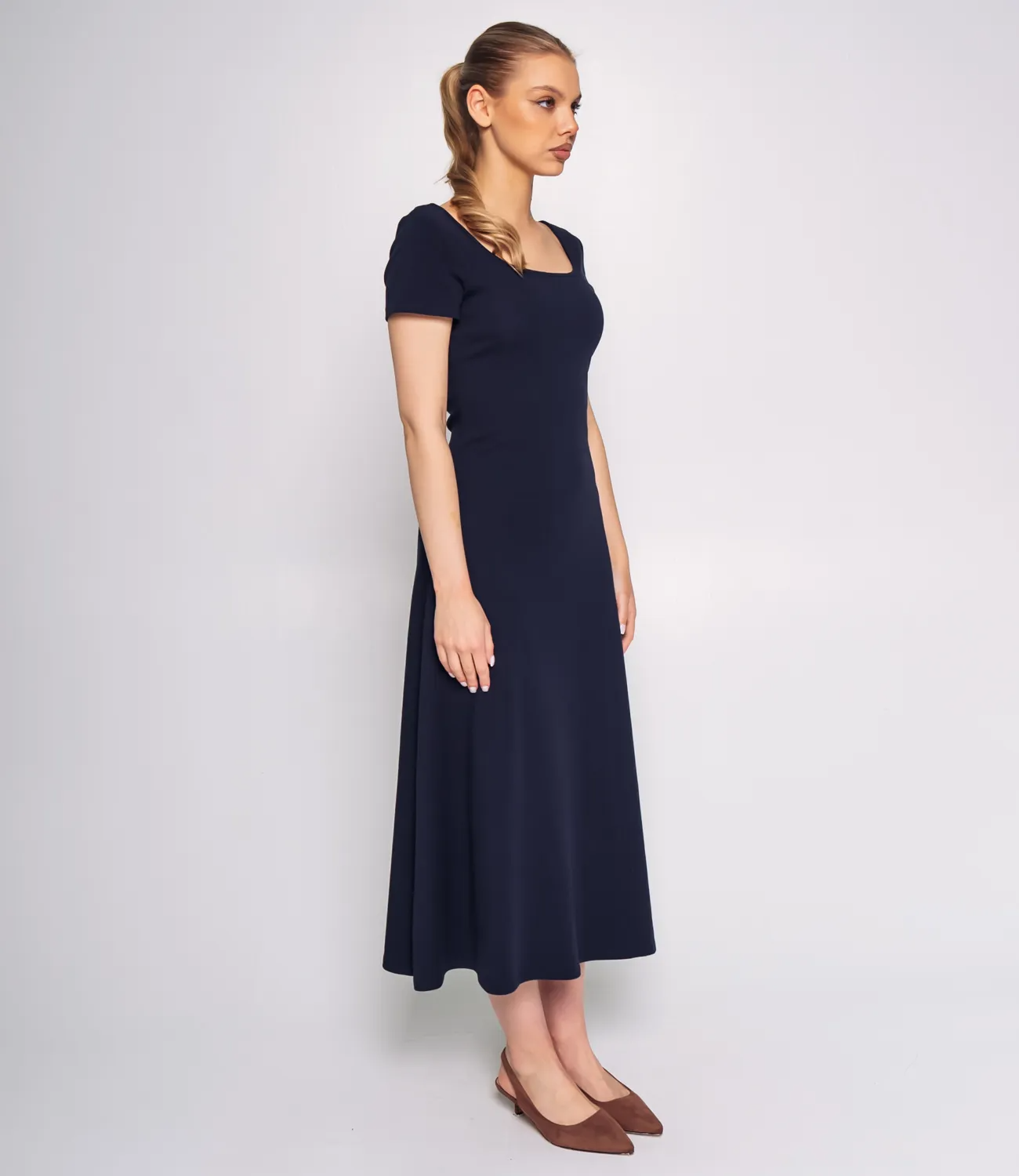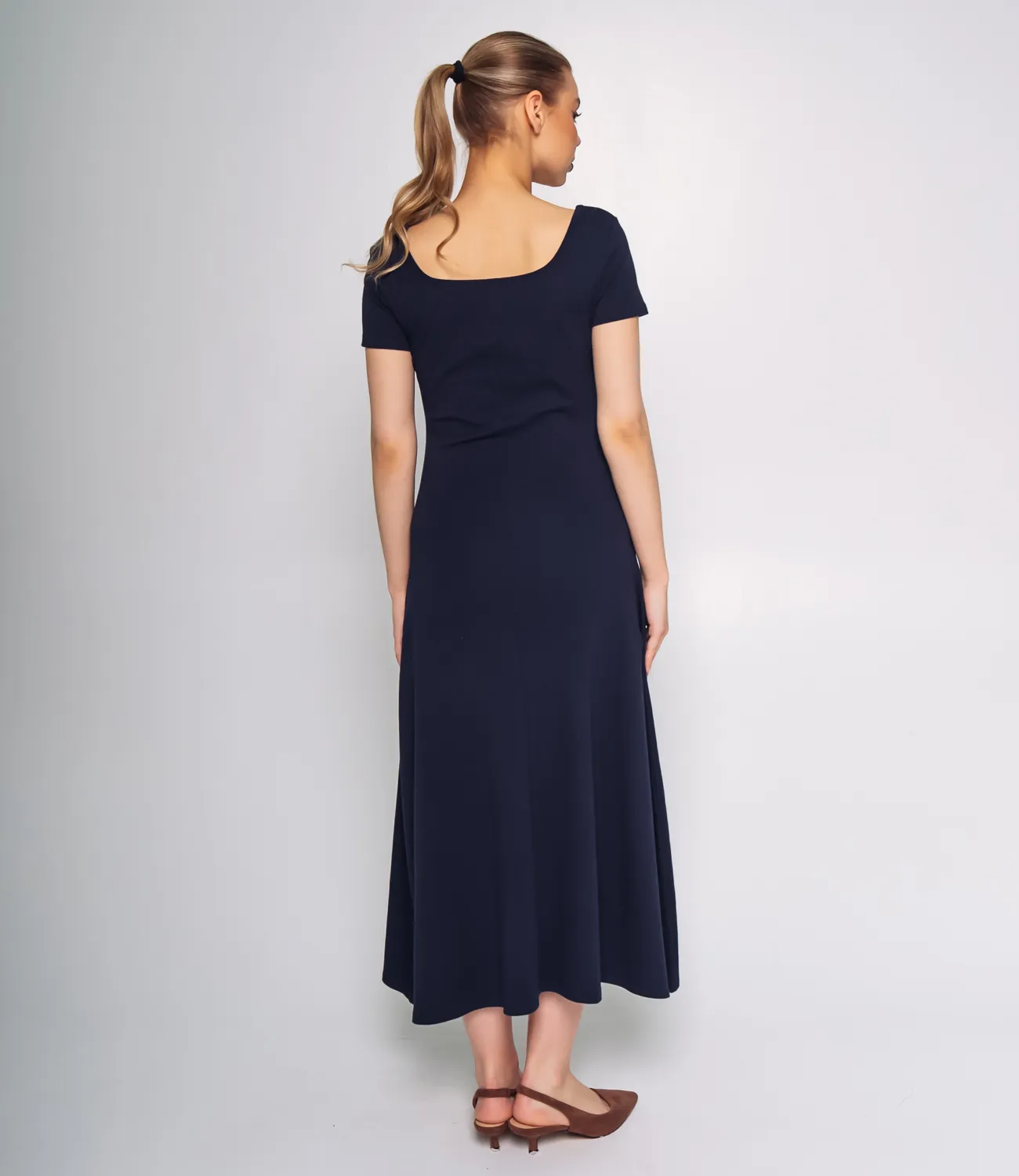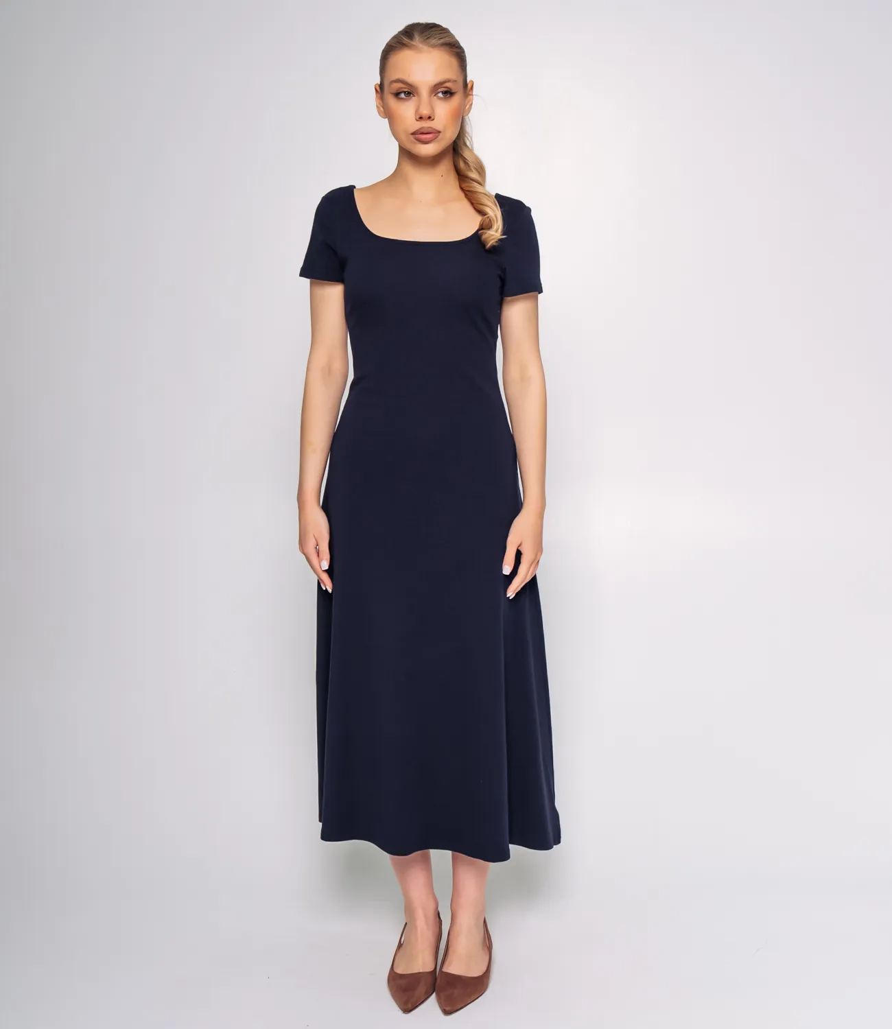 Платье выполнено из мягкой и приятной к телу ткани, состоящей из 97% хлопка и 3% спандекса, что обеспечивает легкую эластичность и комфорт при носке, а также хорошую посадку по фигуре. Модель имеет облегающий силуэт, который подчеркивает формы, при этом благодаря добавлению спандекса платье не стесняет движений. Длина платья — макси, оно достигает щиколоток. Вырез горловины широкий, квадратной формы, что придает образу изысканность и женственность. Рукава короткие, плотно прилегающие, что гармонирует с общим силуэтом и создает сбалансированный вид. Кромка изделия чуть расширяется книзу, создавая легкие плавные движения ткани при ходьбе. Отсутствие дополнительных декоративных элементов делает платье минималистичным и универсальным для разных образов и ситуаций. Привлекательная цена делает егодоступными для оптовых покупателей, что позволит удовлетворить потребности вашей клиентской базы. Подарите своим клиентам возможность наслаждаться стилем и комфортом в этом замечательном платье! Рост 168 см, 89-63-90.