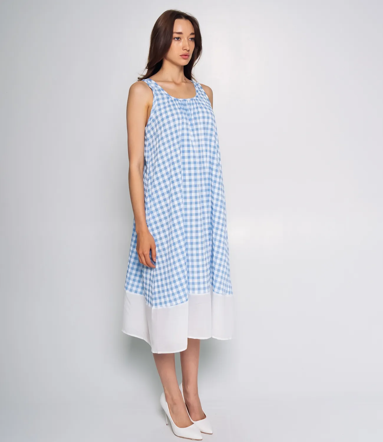 Платье выполнено из 100% полиэстера, что придаёт ткани легкость и комфорт, а также обеспечивает простоту ухода за изделием. Модель имеет свободный силуэт, который не сковывает движения и подходит для повседневной носки. Верхняя часть платья оформлена круглыми проймами и округлым вырезом горловины, придающим изделию мягкость и женственность. Основная часть платья украшена узором в форме мелкой клеточки, что добавляет ему свежести и легкости. Платье имеет длину ниже колена, и внизу выполнена широкая отделка из ткани без узора, создающая визуальное разделение и добавляющая интересный акцент к изделию. Кромка платья ровная, без дополнительной отделки. Эта модель отлично подойдет для теплой погоды, сочетая в себе практичность и стиль благодаря лаконичному крою и мягкой структуре ткани. Привлекательная цена делает его доступными для оптовых покупателей, что позволит удовлетворить потребности вашей клиентской базы. Подарите своим клиентам возможность наслаждаться стилем и комфортом этом замечательном платье!! Рост 168, 85-63-92.