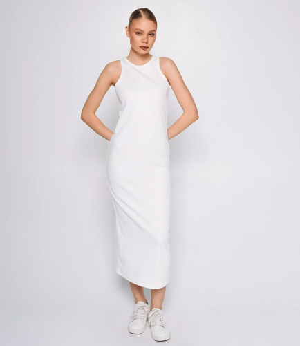 Платье выполнено из 65% хлопка, 30% полиэстера и 5% эластана, что придает ткани легкость, воздушность и приятное шелковистое ощущение при соприкосновении с кожей. Платье длиной миди, облегающего силуэта. Оно имеет круглый вырез горловины и короткие, втачные рукава. Верхняя часть платья, до линии бедер, плотно облегает фигуру, подчеркивая силуэт. Нижняя часть расклешенная, плавно расширяется от бедра книзу, создавая легкий и женственный A-силуэт. Ткань платья, скорее всего, мягкая и эластичная, что обеспечивает комфортную посадку. Особенностью платья является небольшой вырез на спине, украшенный несколькими аккуратными бантами. Это добавляет образу кокетливости и оригинальности, делая акцент на спине. Благодаря простому крою, минималистичному дизайну и деликатной детали на спине, платье выглядит лаконично, но в то же время эффектно и универсально! Рост 164, 83-61-89. Вы можете заказать онлайн презентацию на интересующие Вас модели. Наши менеджеры свяжутся с Вами и проведут индивидуальную видеотрансляцию, помогут составить заказ и ответят на Ваши вопросы.