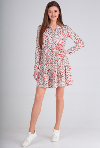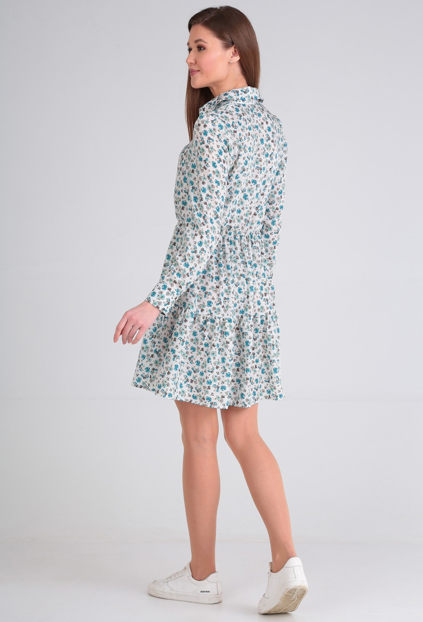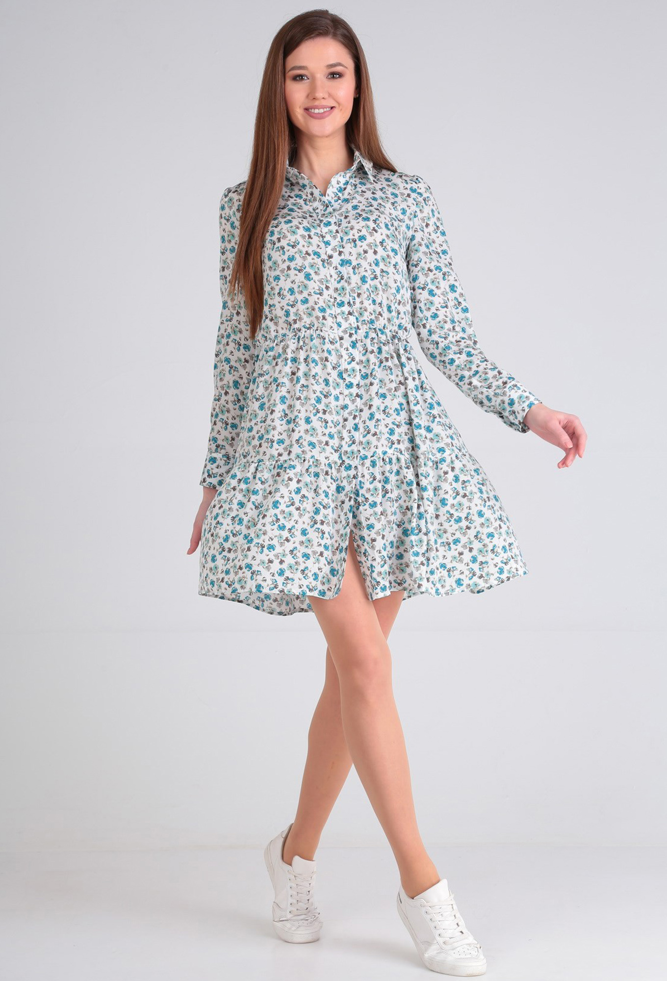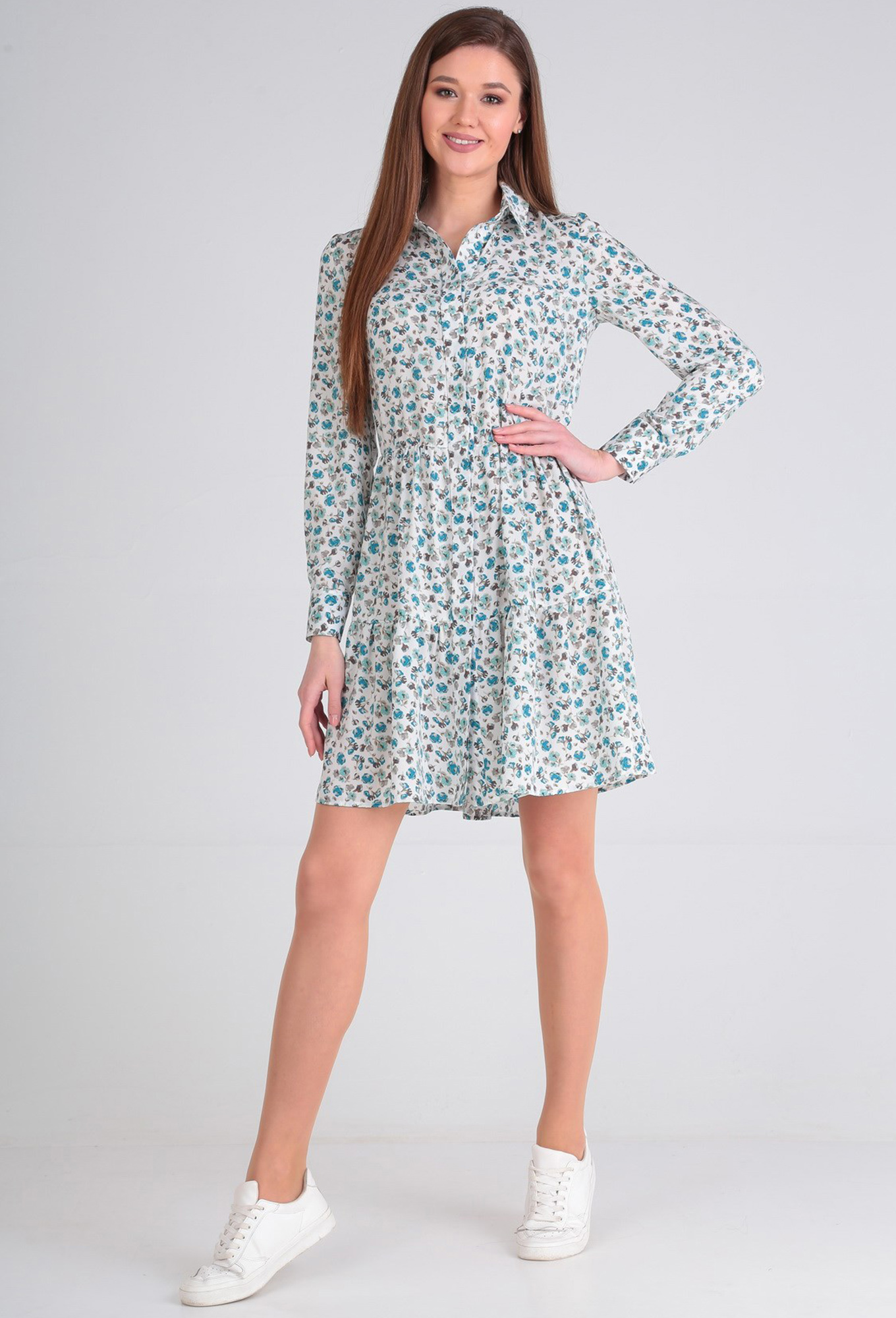 Модель: Леди Лайн 473 голубой Рос..показатьт: 164 см (рост модели на фото 170см) Сезон: весна-лето Тип ткани: Полиэфир 49%, Вискоза 48%, Спандекс 3%Платье свободного силуэта отрезное по линии талии. Лиф состоит из передней части с нагрудными вытачками. Спинка без вытачек. К лифу пришиты два волана. По переду пришита планка с потайной застёжкой на 7 пуговиц и петель. Воротник на стойке. Рукав втачной одношовный. По низу рукава пришит манжет с застёжкой на две петли и пуговицы. Длина рукава 62см