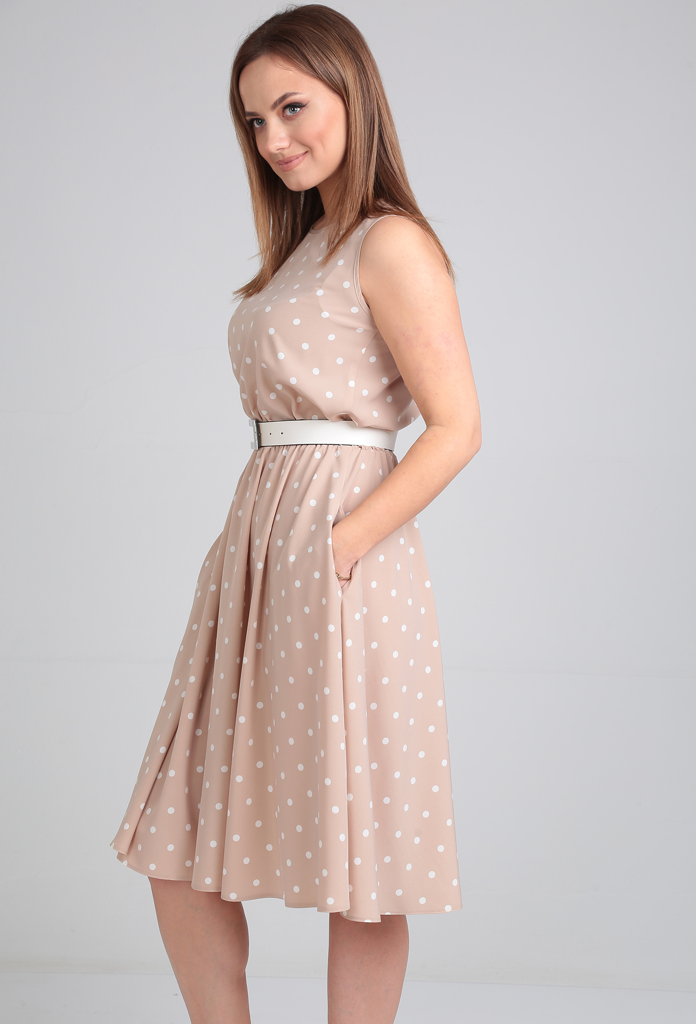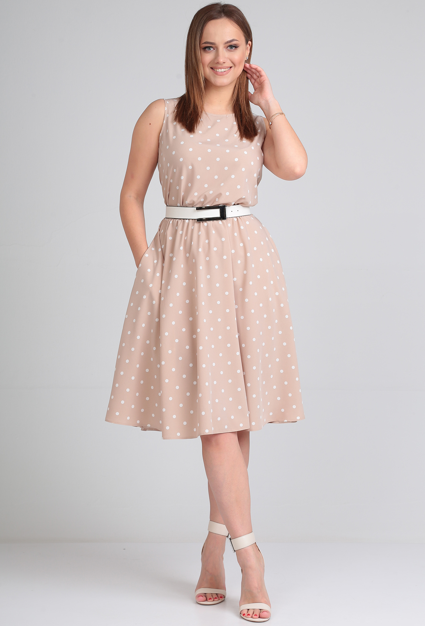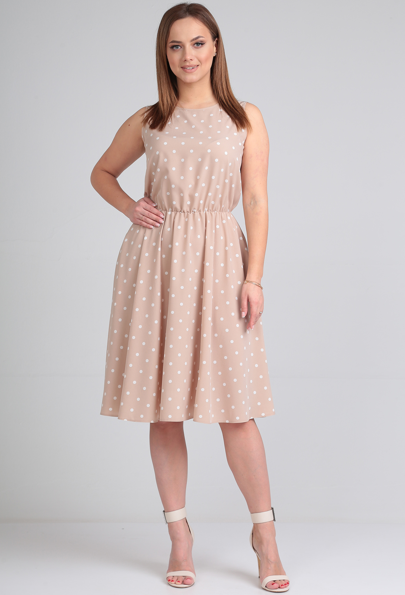 Платье Lady Line 544 бежевый горох