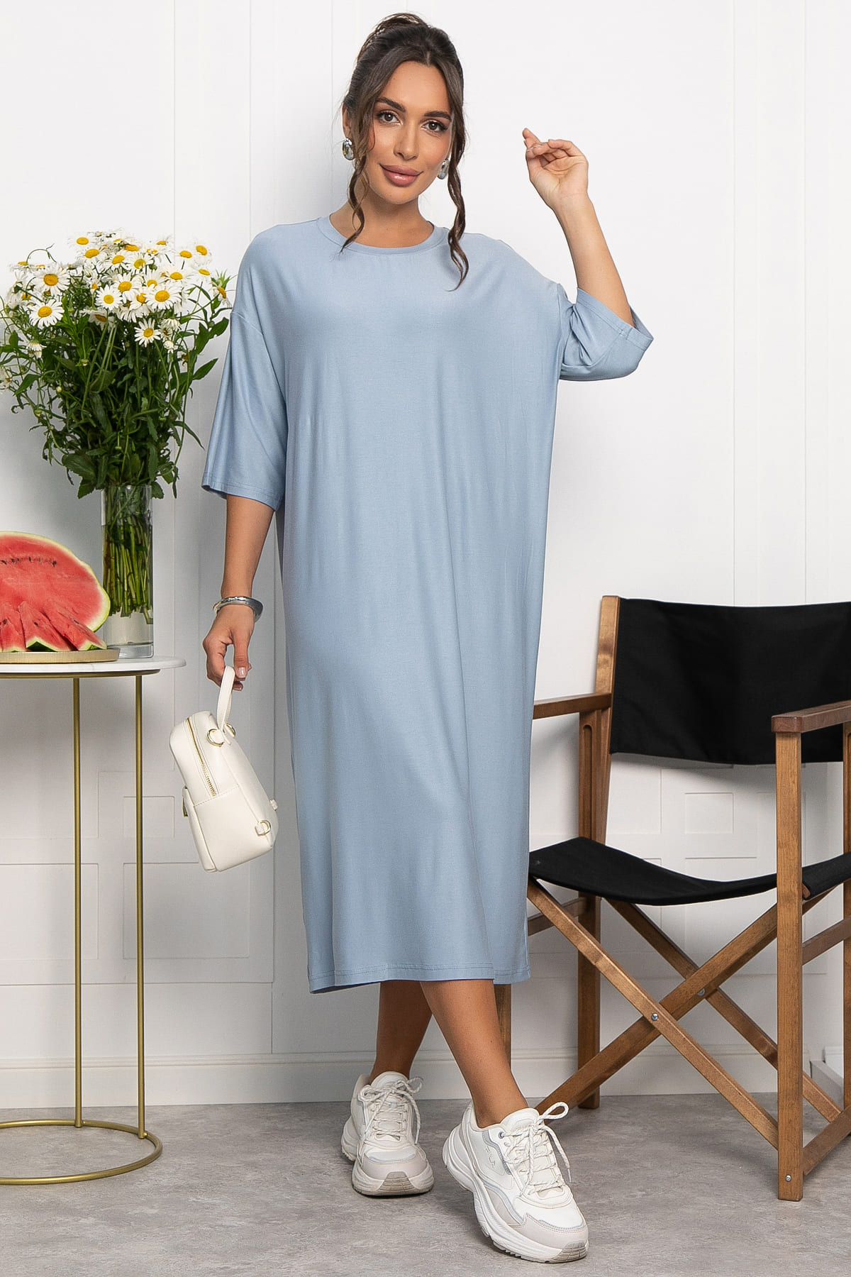 Платье-футболка — это идеальное сочетание удобства и элегантности, которое станет незаменимым элементом вашего гардероба! Благодаря свободному крою, платье не стесняет движений, позволяя вам чувствовать себя комфортно в любой ситуации. Лаконичный дизайн платья легко сочетается с различными аксессуарами, что позволяет создавать разнообразные образы для любого случая. Платье имеет округлую горловину и спущенный рукав. Добавьте это платье в свой гардероб и наслаждайтесь удобством и стильным образом каждый день.