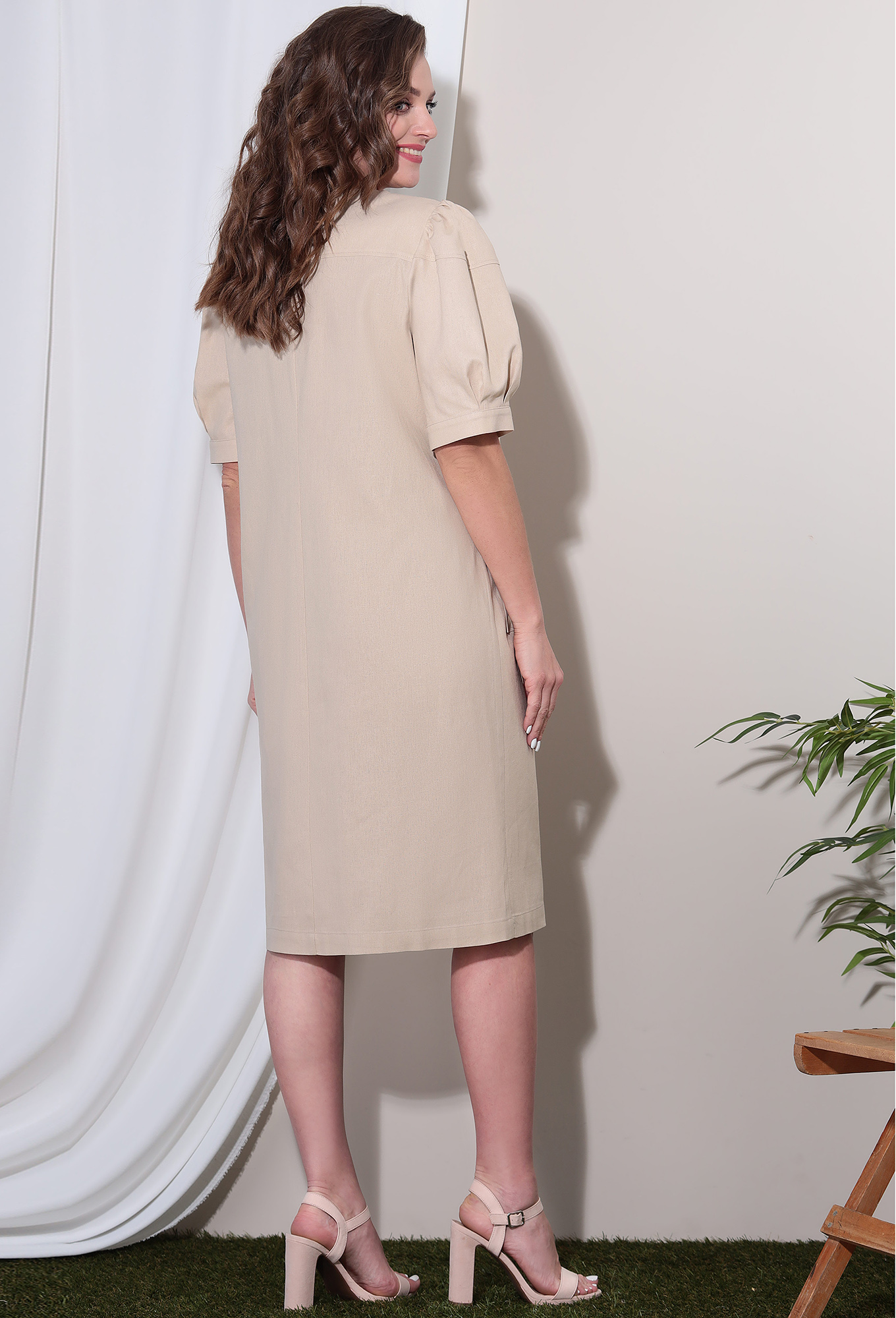 Модель: Лената 11268 бежевый Рост..показать: 164-170 см (рост модели на фото 170см) Сезон: Весна - Лето Тип ткани: 55% Лён 45% ВискозаПлатье полуприлегающего силуэта без подкладки. Вырез горловины фигурной формы. По переду платья средний шов, горизонтальные кокетки от линии горловины, нагрудные вытачки и накладные карманы с клапаном. Спинка со средним швом и горизонтальной кокеткой. Рукав одношовный, втачной с позрезом по окату который является продолжением линии кокеток переда и спинки.По окату рукава сборка Длина выше линии локтя. По низу рукава притачная манжета, в шве притачивания манжеты заложены три встречные складки.