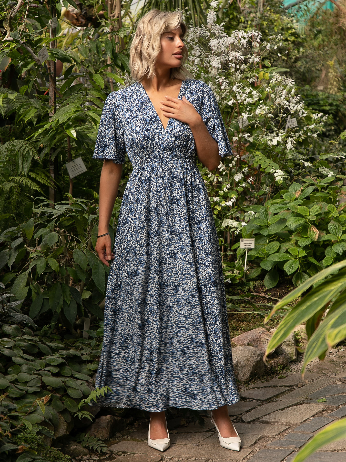 Погрузитесь в летние дни с нашим элегантным платьем! Лиф с эффектом запаха подчеркивает декольте, а отрезная часть с резинкой под грудью создает утонченный силуэт. Нежные рукава-крылья придают легкость, а юбка полусолнце струится при каждом движении. Идеальный выбор для прогулок и летних вечеринок — позвольте себе сиять!