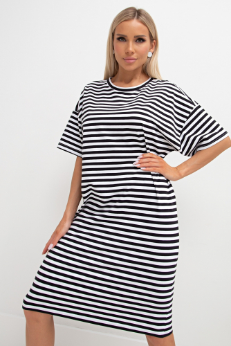 Стильное платье полуприлегающего силуэта из мягкого трикотажного полотна. Горловина оформлена воротником-стойка, по спинке разрез-капелька с застежкой на петлю и пуговицу. Короткий втачной рукав. Низ ровный, без разрезов.