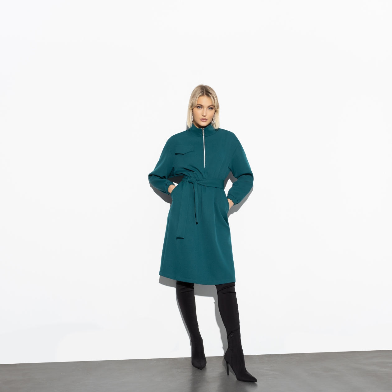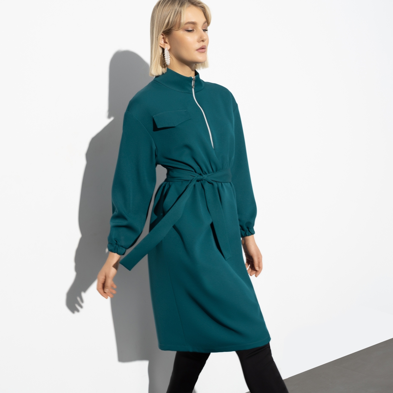 Низкая температура воздуха за окном не станет поводом пренебрегать своей женственностью. Длинный рукав, плотная ткань и воротник-стойка согреют вас, а ваша красота согреет окружающих. Такой круговорот тепла в природе.