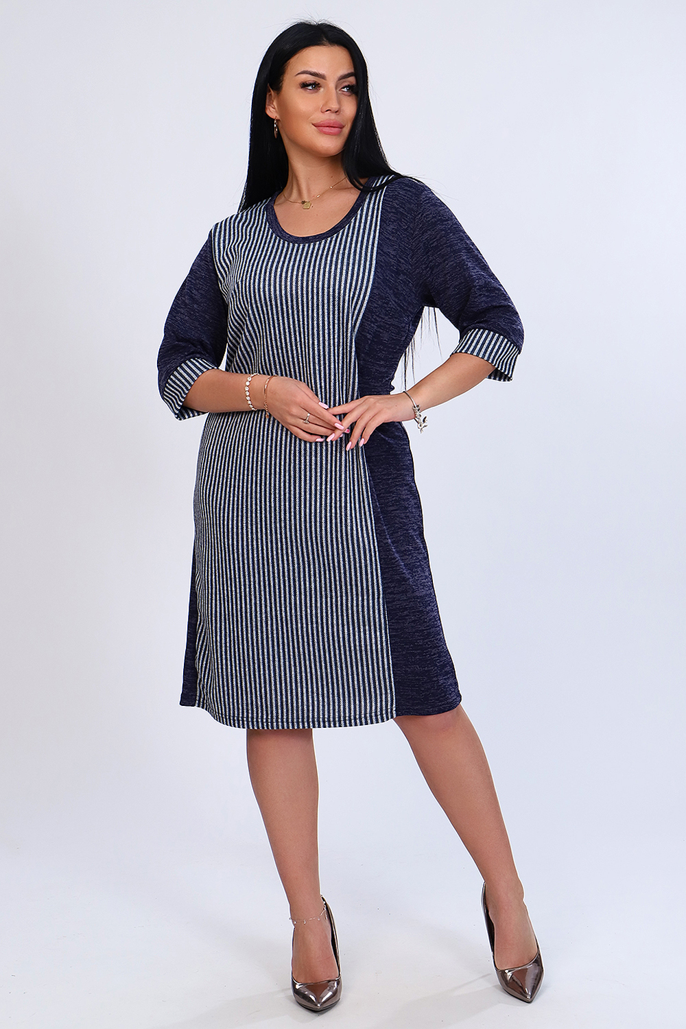 Платье прямого силуэта, красивое сочетание двух принтов, вырез округлый, отделан кантом, рукав 3/4 на манжете. Длина ниже колена. Цвет: синяя полоса;серая полоса; Материал: ангора;ангора; Состав: 100% полиэстер.