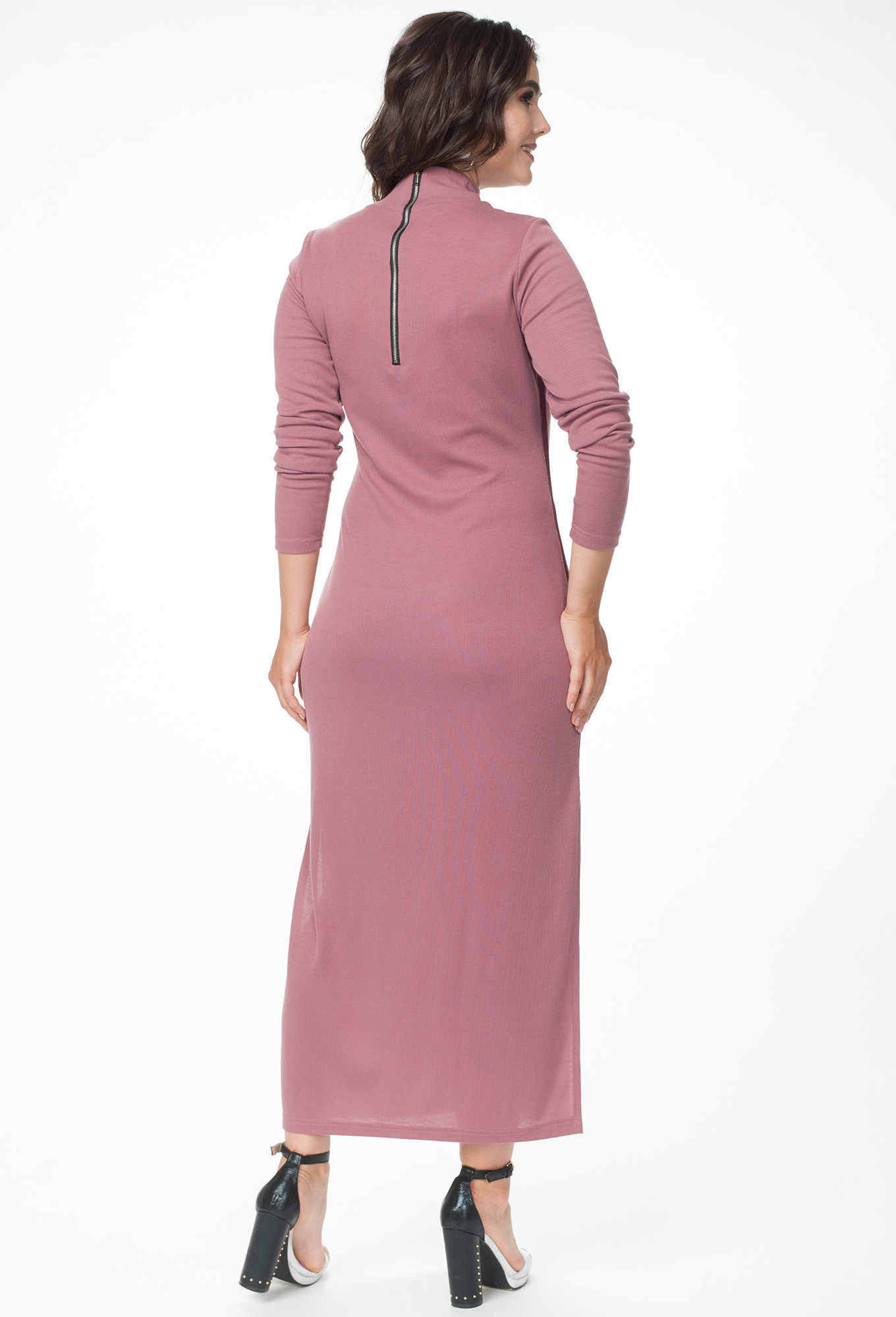 Трикотажное платье(ткань в рубчик),полуприлегающего силуэта. Застёжка на декоративную молнию по спинке, рукав втачной, с настроченной контрасной тесьмой ,так же тесьма настрочена и по боковому шву, имеются два разреза.ст: 164 см (рост модели на фото 170см)