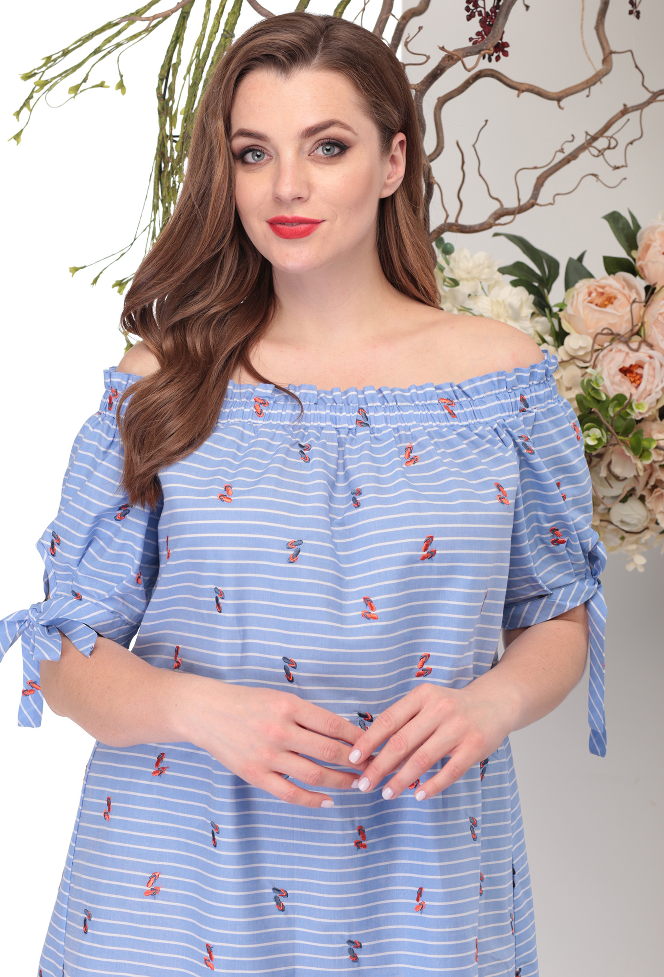 Модель: Мишель Шик 2005 сланцы Ро..показатьст: 164 см (девушка на фото 170 см) Сезон: весна-лето Тип ткани: 100% хлопокЛёгкое и просторное летнее платье. За счёт украшающей ткань вышивки будет актуально смотреться как на пляже, так и в городском кафе.  Прямое по крою имеет спущенное плечо, которое фиксируется благодаря резинке. Рукава фонарики на завязках. Длина 81+-1 см.ст: 164 см (девушка на фото 170 см)