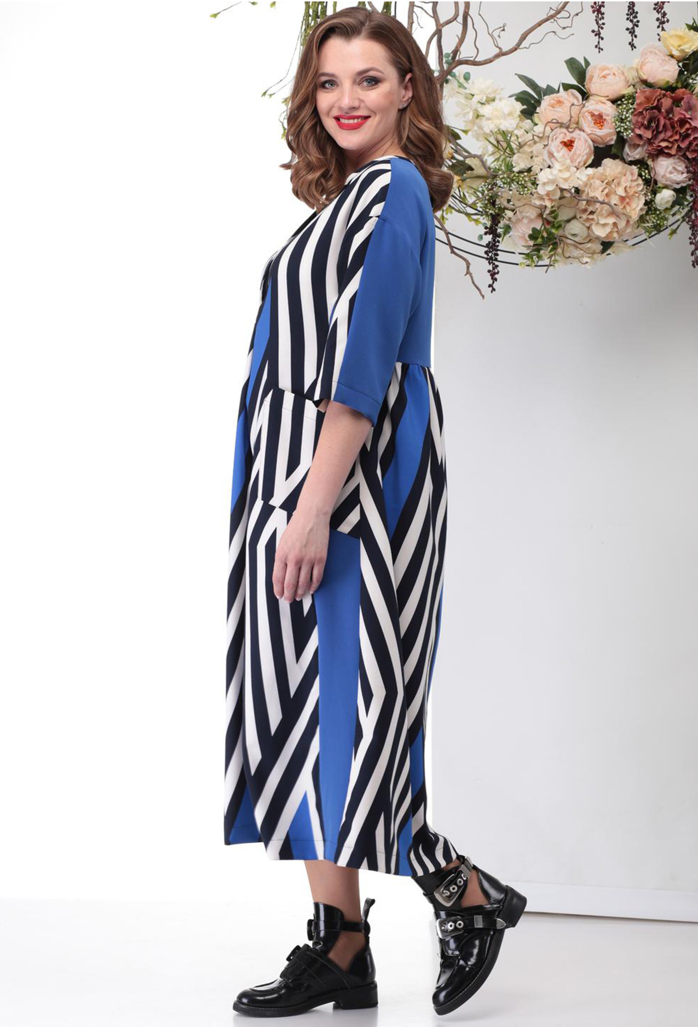 Модель: Мишель Шик 2013 синий Рос..показатьт: 164 см (девушка на фото 170 см) Сезон: Весна-Лето Тип ткани: 96% полиэстер, 4% спандексПлатье в стиле casual предназначено для повседневной носки, прекрасно сочетается с любой по стилю обувь. Прекрасно смотрится благодаря натуральным тканям-компаньонам и интересному крою. Рукав приспущен относительно плеча, длина 3/4 -от горловины 55 см, горловина округлая, на пуговицах. По переду настрочены карманы. Длина по среднему шву спинки 122см +-2см. Изделие подойдет на рост 170см.т: 164 см (девушка на фото 170 см)