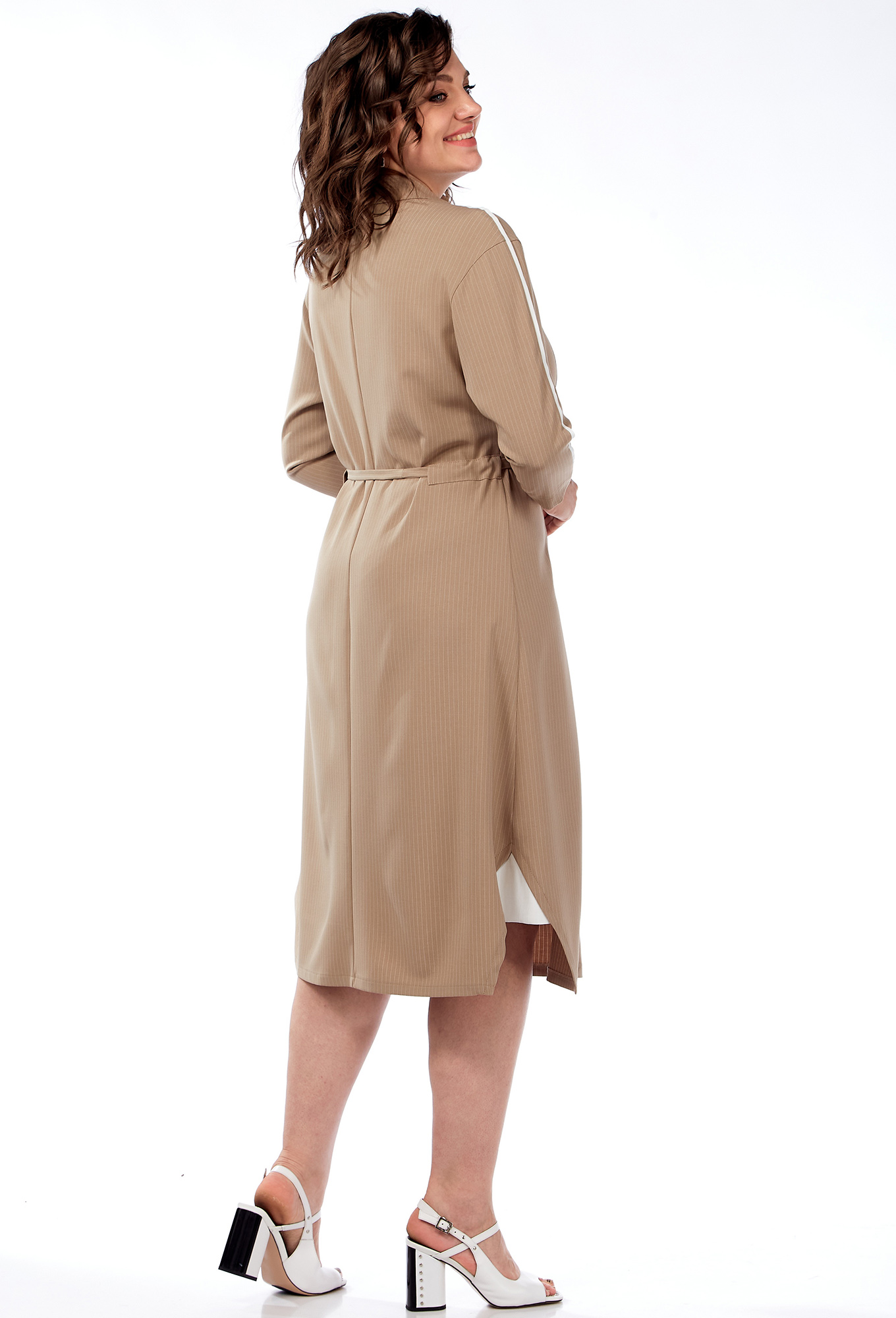 Модель: Мишель Шик 2124 бежевый Р..показатьост: 164 см (девушка на фото 170 см) Сезон: весна-лето Тип ткани: 92% полиэстер, 6%спандекс, 2% хлопокЖенское платье-рубашка прекрасно подойдет как для повседневной носки, так и для делового стиля. Платье выполнено из средней плотности плательной ткани в мелкую полоску. По переду рельефы от плечевого шва до низа, спинка с центральным швом. Платье полуприлегающего силуэта, с легким расклешением к низу, за счет рельефов и боковых уголков в разрезах. Платье длинной за колено. Вырез горловины круглый с рубашечным воротником на стойке и центральной застежкой-планкой (на пуговицы). Рукав втачной, двухшовный 3/4. По линии талии настрочная кулиска со съемным поясом из основного материала. Длина изделия по спинке 110 (+/-1)см, длина рукава 61 (+/-1)см. Изделие подойдет на рост 170 см.ост: 164 см (девушка на фото 170 см)