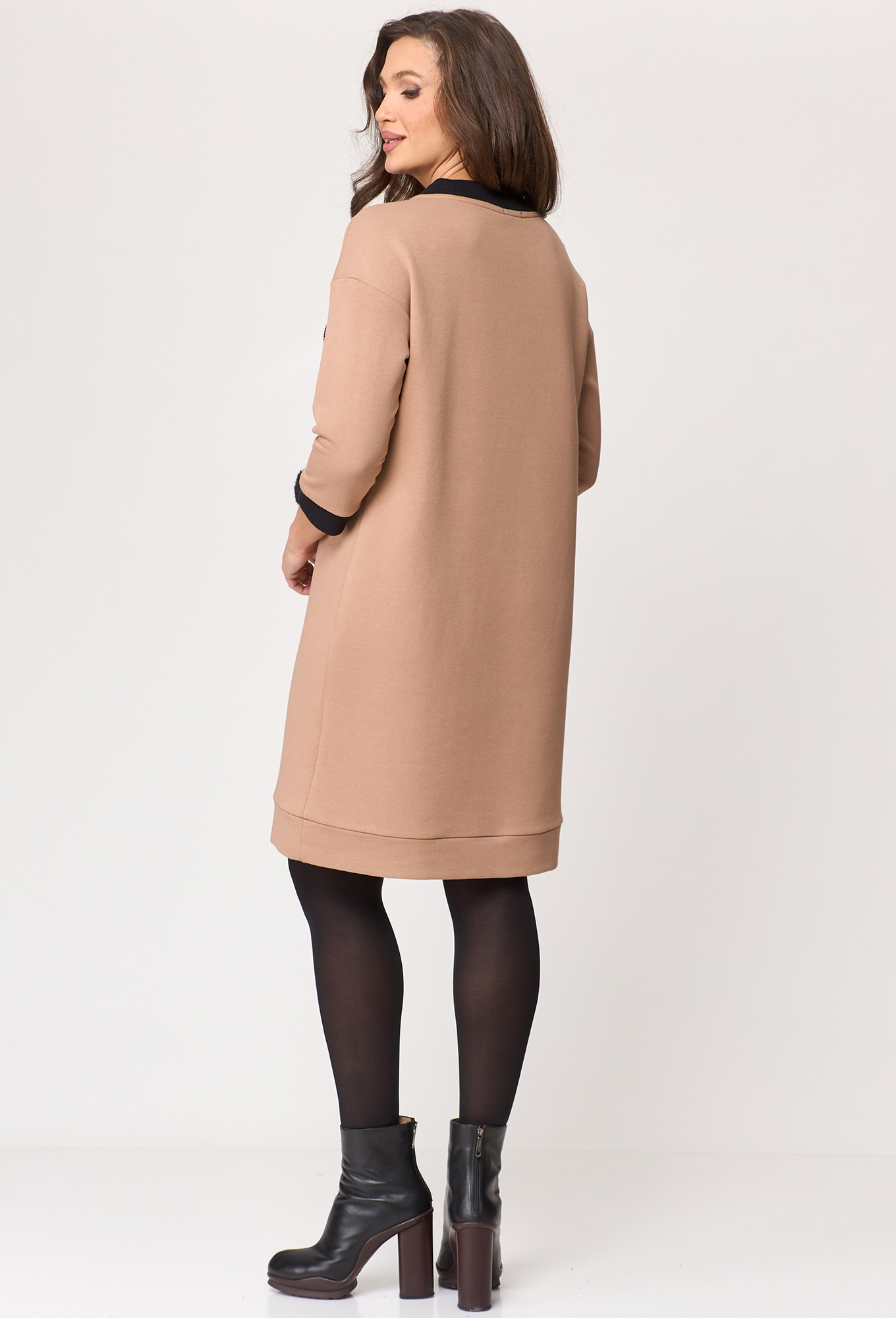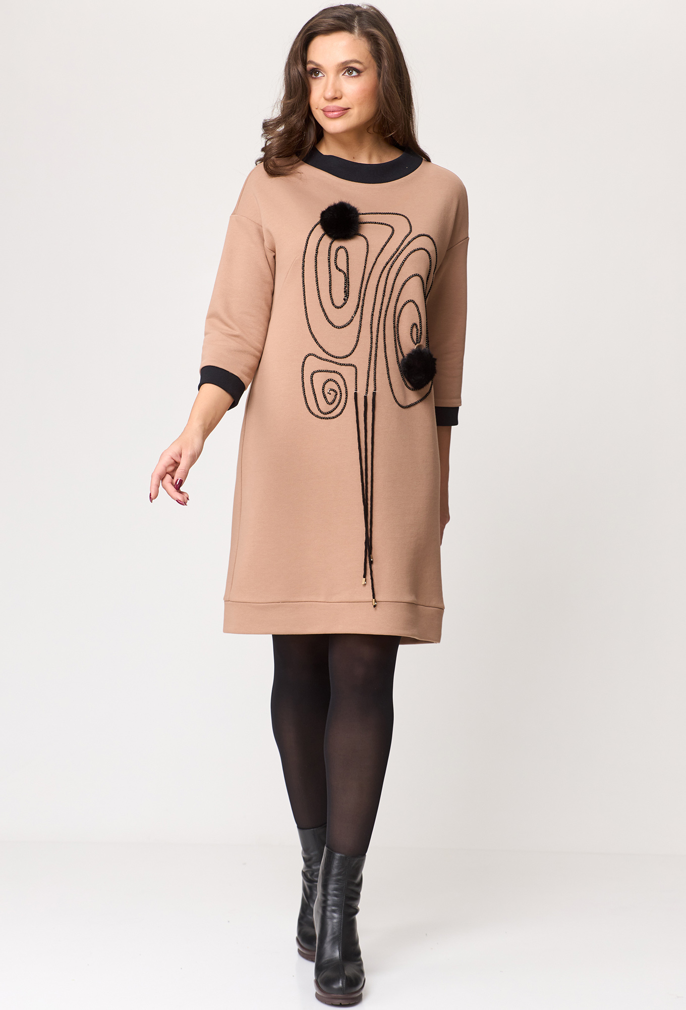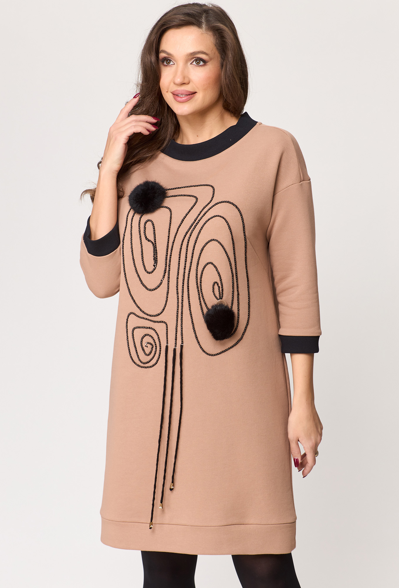 Модель: Мишель Шик 2153 бежевый Р..показатьост: 164 см (девушка на фото ростом 170 см) Сезон: Осень-Зима Тип ткани: 92% хлопок, 8% эластанЖенское трикотажное платье выполнено из футера 3-х нитка, для повседневной носки станет одним из базовых и любимых изделий в Вашем гардеробе. Платье прямого полуприлегающего силуэта, длиной до колена, однотонное с контрастными манжетами из довяза и планкой горловины. Вырез горловины круглый, рукав втачной длиной 3/4. Украшением платья служит контрастная вышивка из шнура и пристегивающиеся меховые пушки.