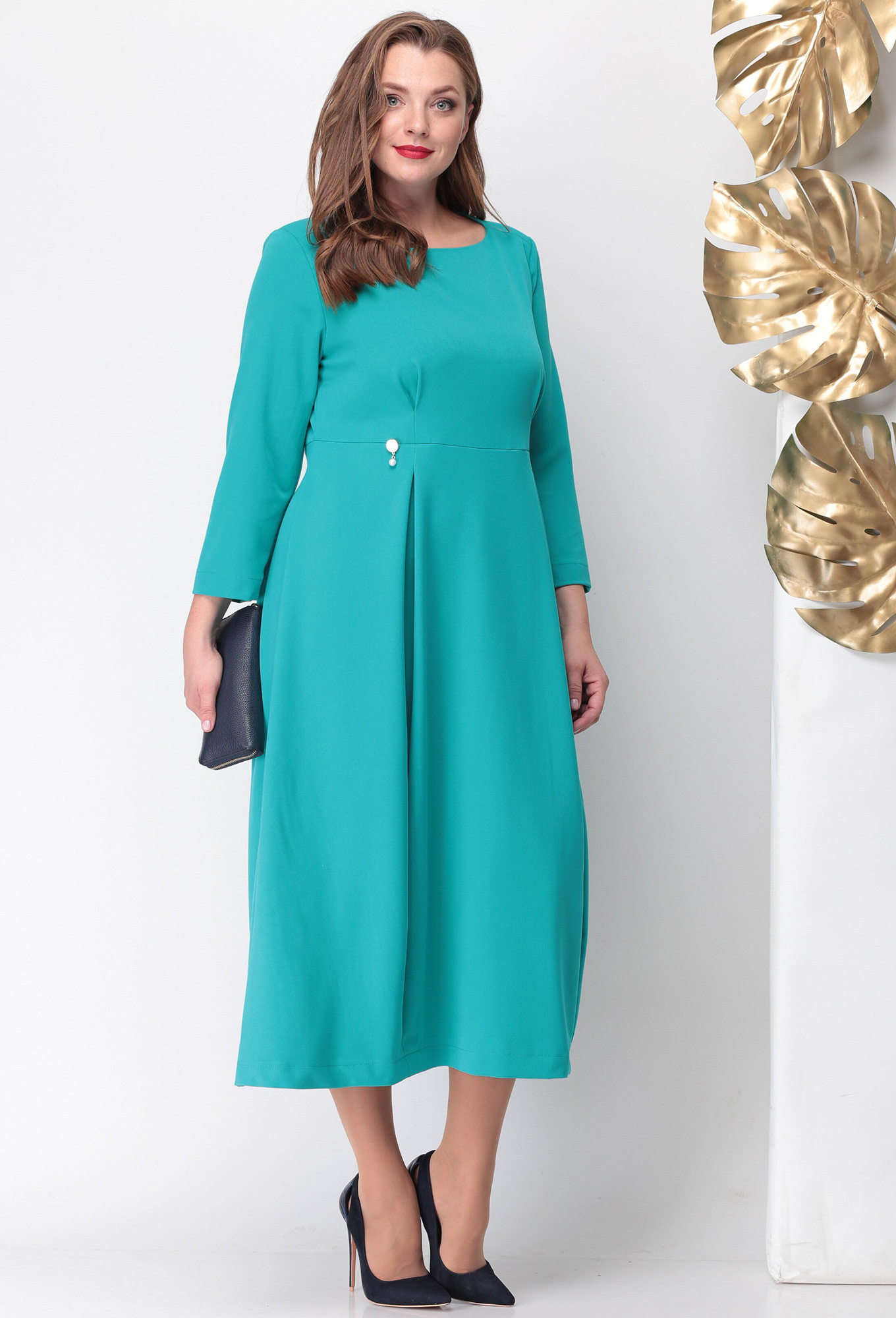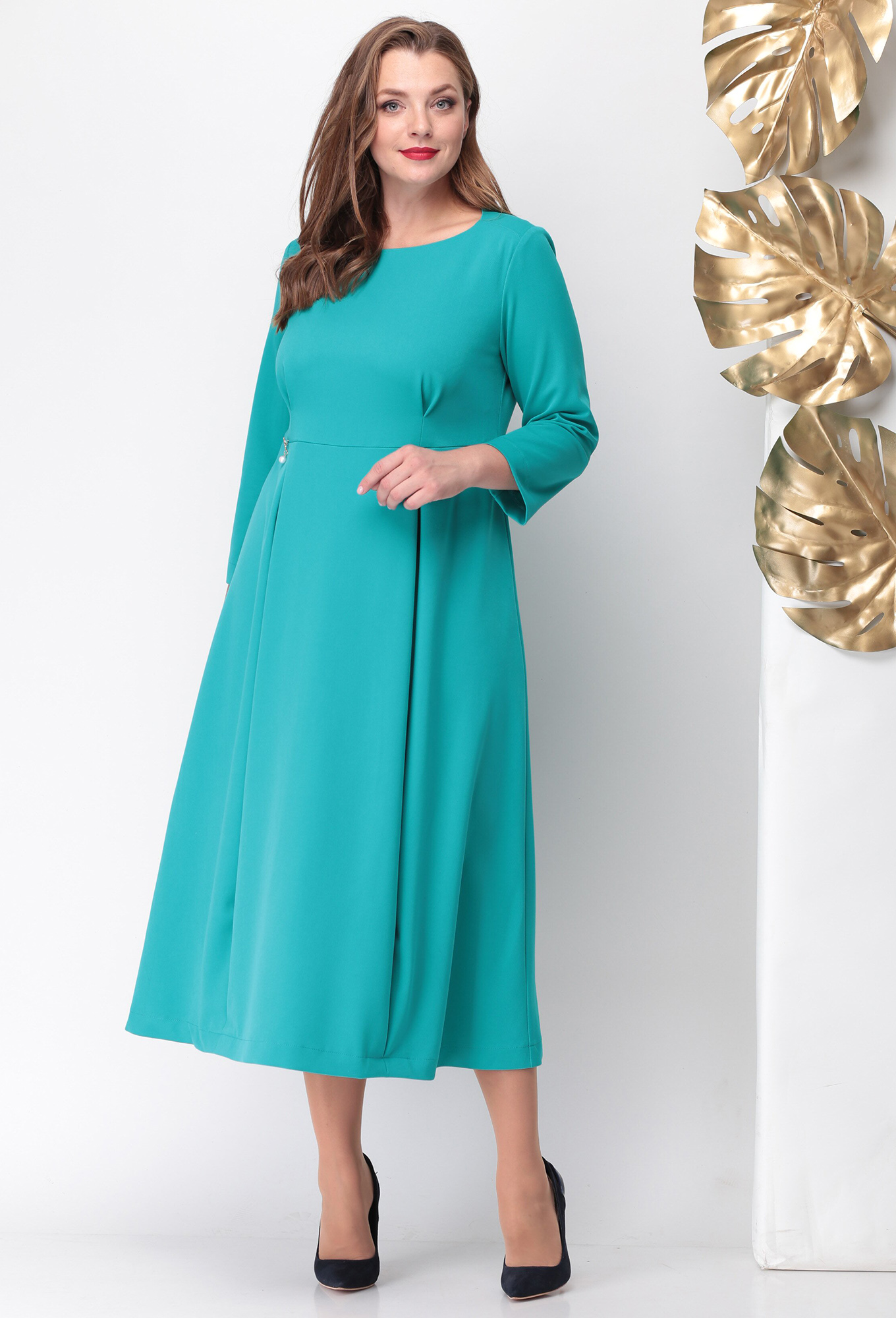Модель: Мишель Шик 946 бирюза Рос..показатьт: 164 см (девушка на фото ростом 170 см) Сезон: круглогодичный Тип ткани: полиэстер 62%, вискоза 33%, спандекс 5%Базовое платье, которое легко обыграть аксессуарами и одеть как на вечеринку так и в офис. Застроченные встречные складки на лифе служат выточками, а в юбке дают дополнительный объем и необычный силуэт, по спинке от горловины потайная молния 50см. Выполнено из плотной костюмно-плательной ткани. Горловина лодочка со смещенным плечевым швом. Длина изделия по спинке 119+-1см., длина рукава 52см.т: 164 см (девушка на фото ростом 170 см)