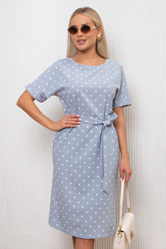 Элегантное платье прямого кроя отлично впишется в ежедневный гардероб. Короткий цельнокроеный рукав, V - образная горловина переходящая в фиксированный запах на груди. По переду юбки выполнена шлица. Пояс из основного материала в комплекте.