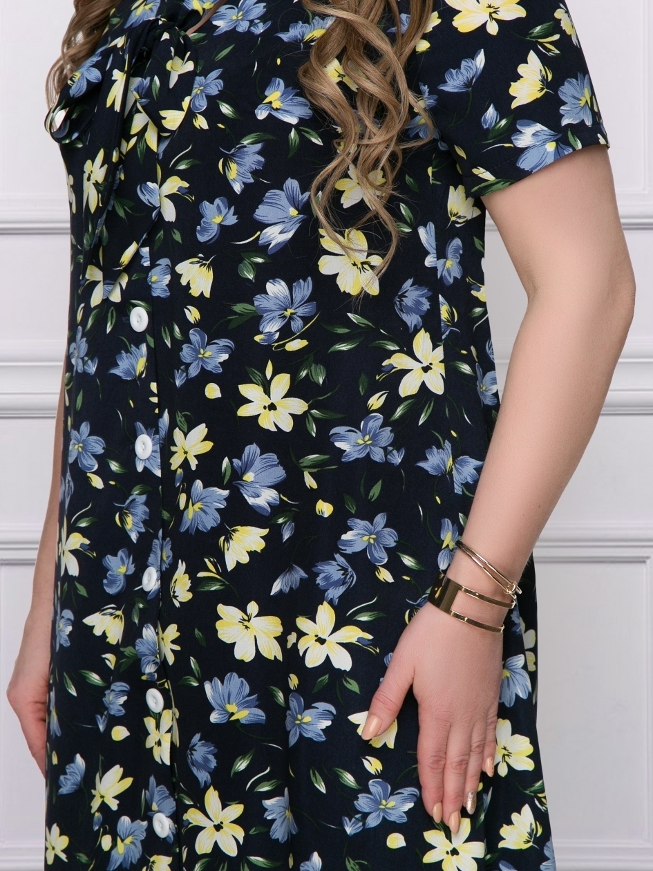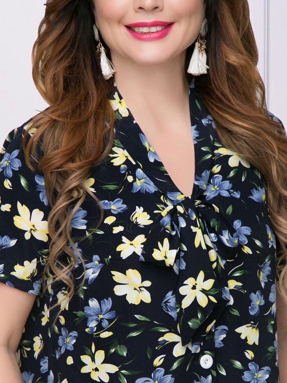 Волшебное шифоновое платье в цветочном рисунке покорит ваш модный гардероб! По низу – стильный воланчик, а на горловине – на ваш выбор – классический галстук или бантик. Платье на застегивающихся пуговках. Чудо-образ!