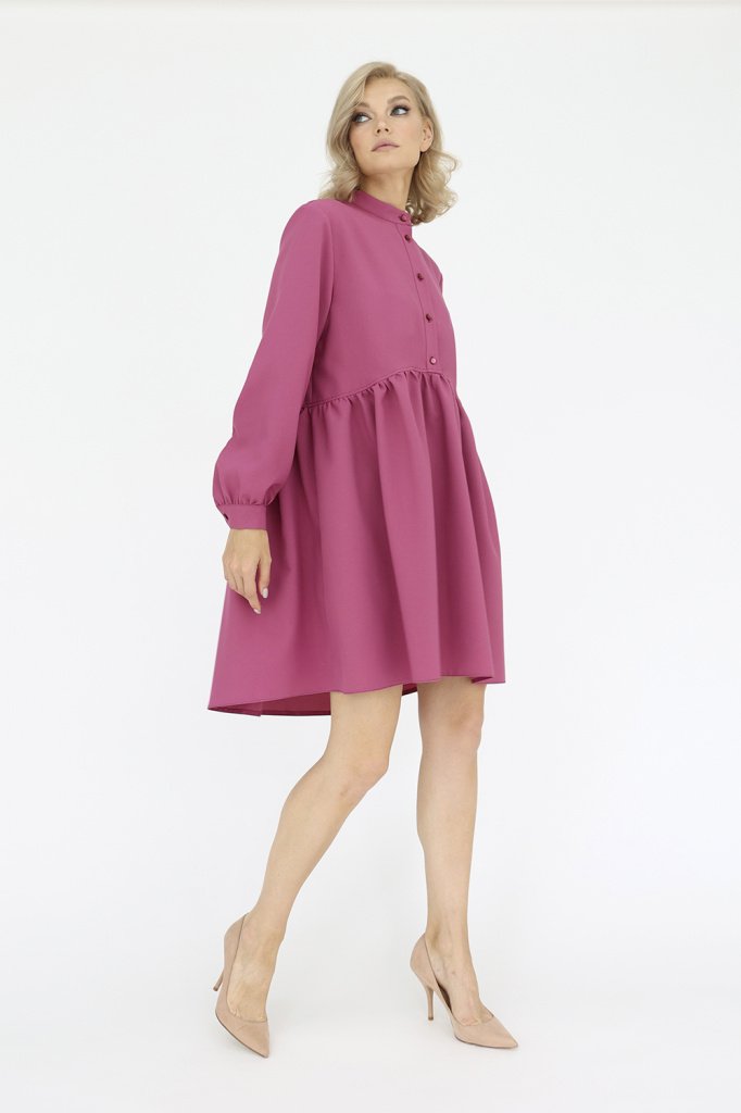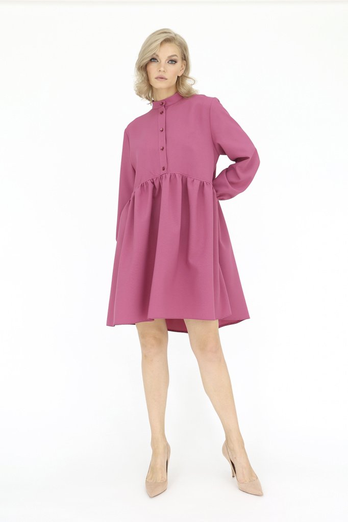 Платье с воротником-стойкой и планкой по переду до линии талии, застегивающейся на пуговицы.