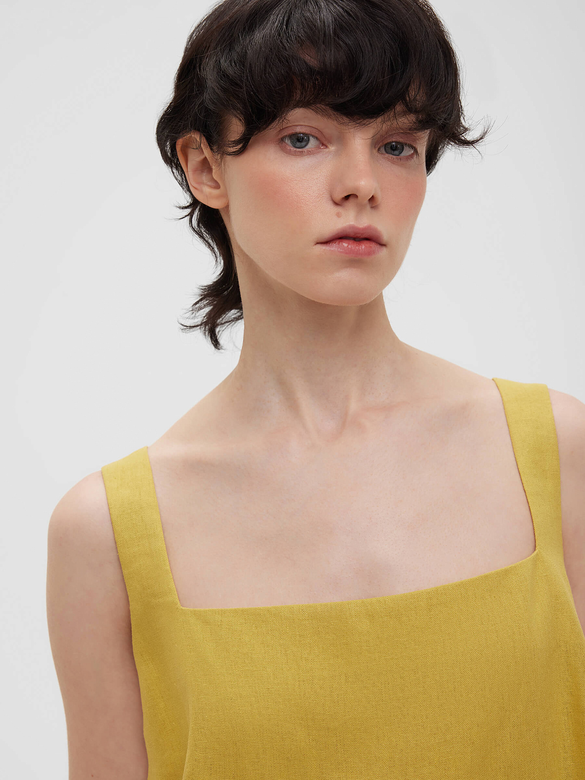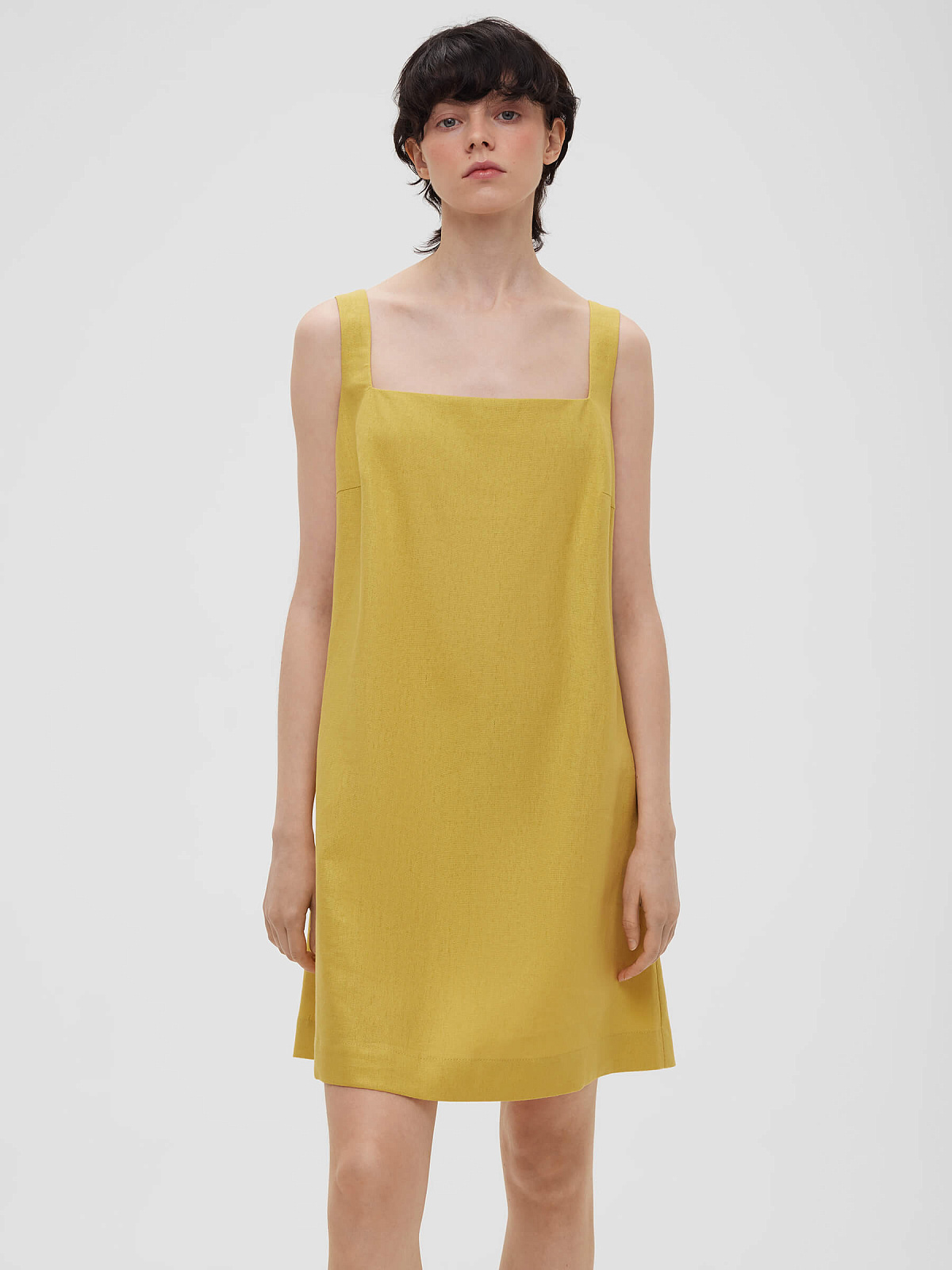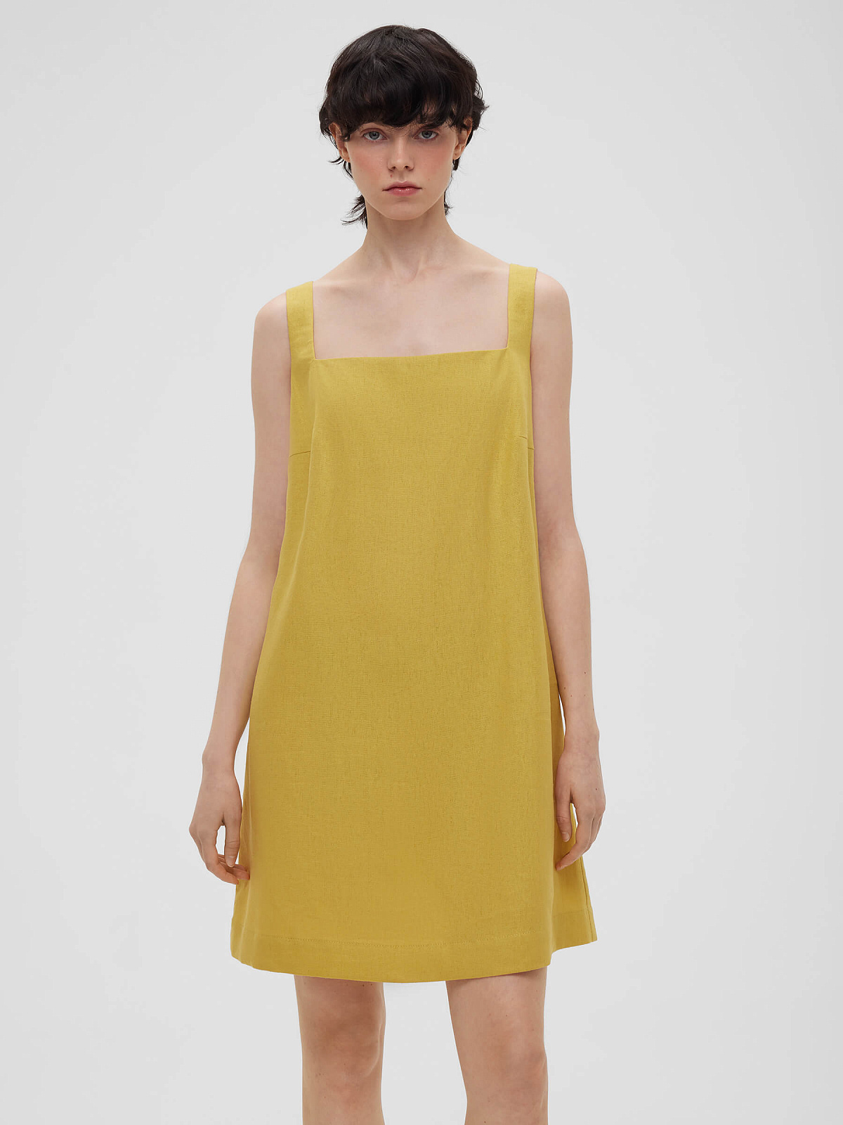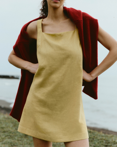 Платье мини из льняной ткани 0191, желтый