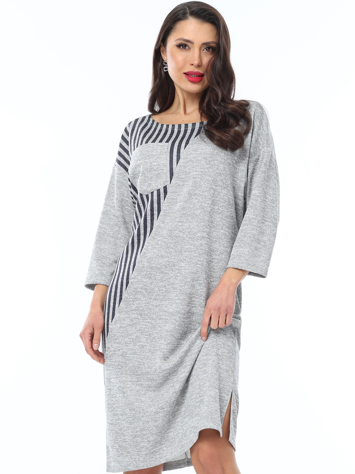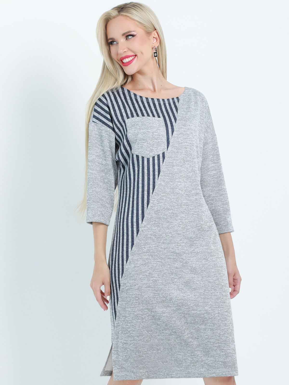 Платье свободного кроя — оригинальная модель, которая окажется в центре внимания. Прямой силуэт надежно скрывает нюансы фигуры, стройнит и позволяет чувствовать себя комфортно. Рукава ¾ и округлый вырез придают образу утонченности и легкости. Благодаря качественному, плотному материалу платье хорошо держит форму, дарит чувство тепла и уюта. Чтобы изделие не деформировалось, рекомендуется стирать его в деликатном режиме при температуре до 30 градусов.