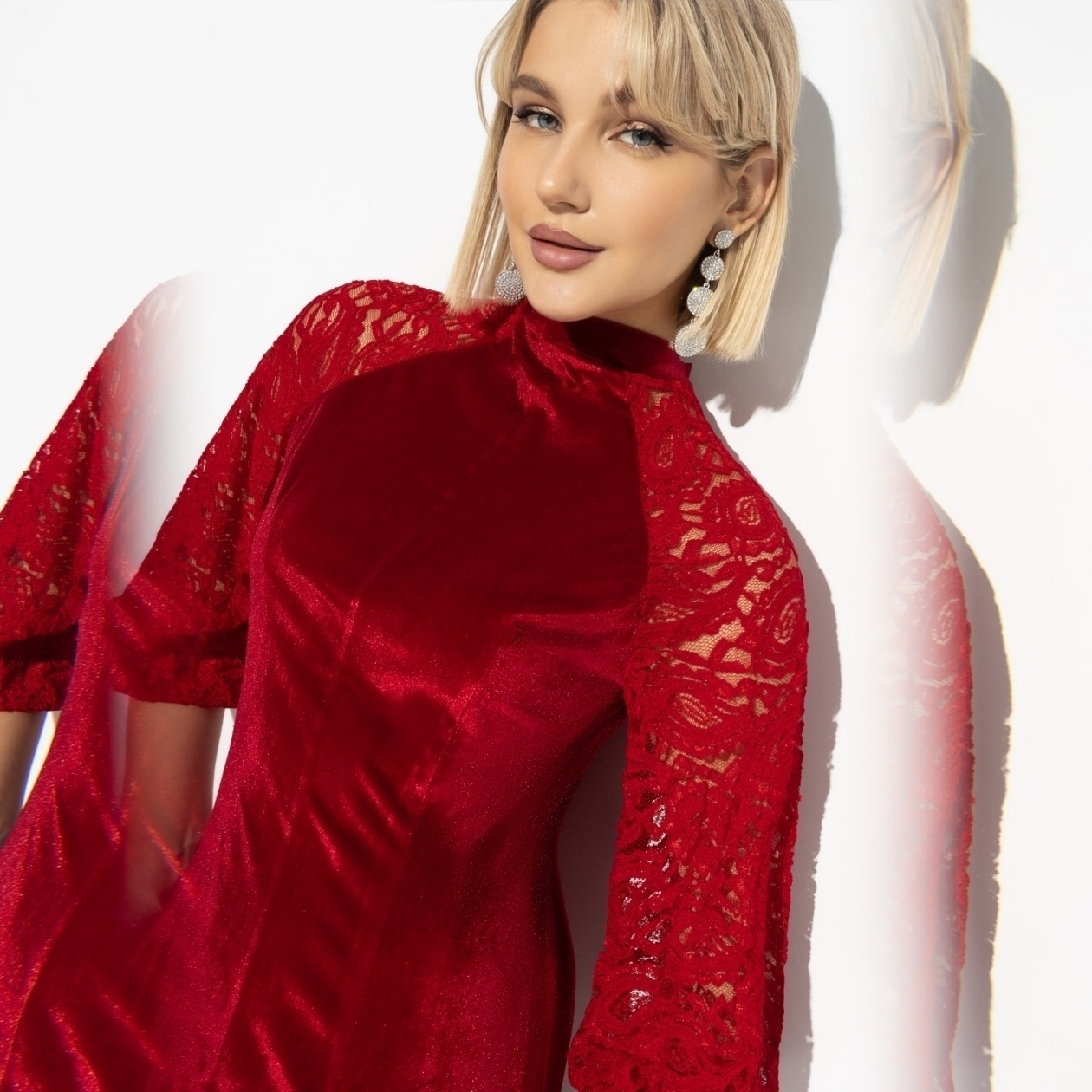 Тройной удар! Кружево, цвет, бархатная фактура. На вас будет всё внимание. Это неизбежно. Лучший выбор для праздничного вечера или торжественного выхода. Только не надевайте на свадьбу к подруге. Не простит.