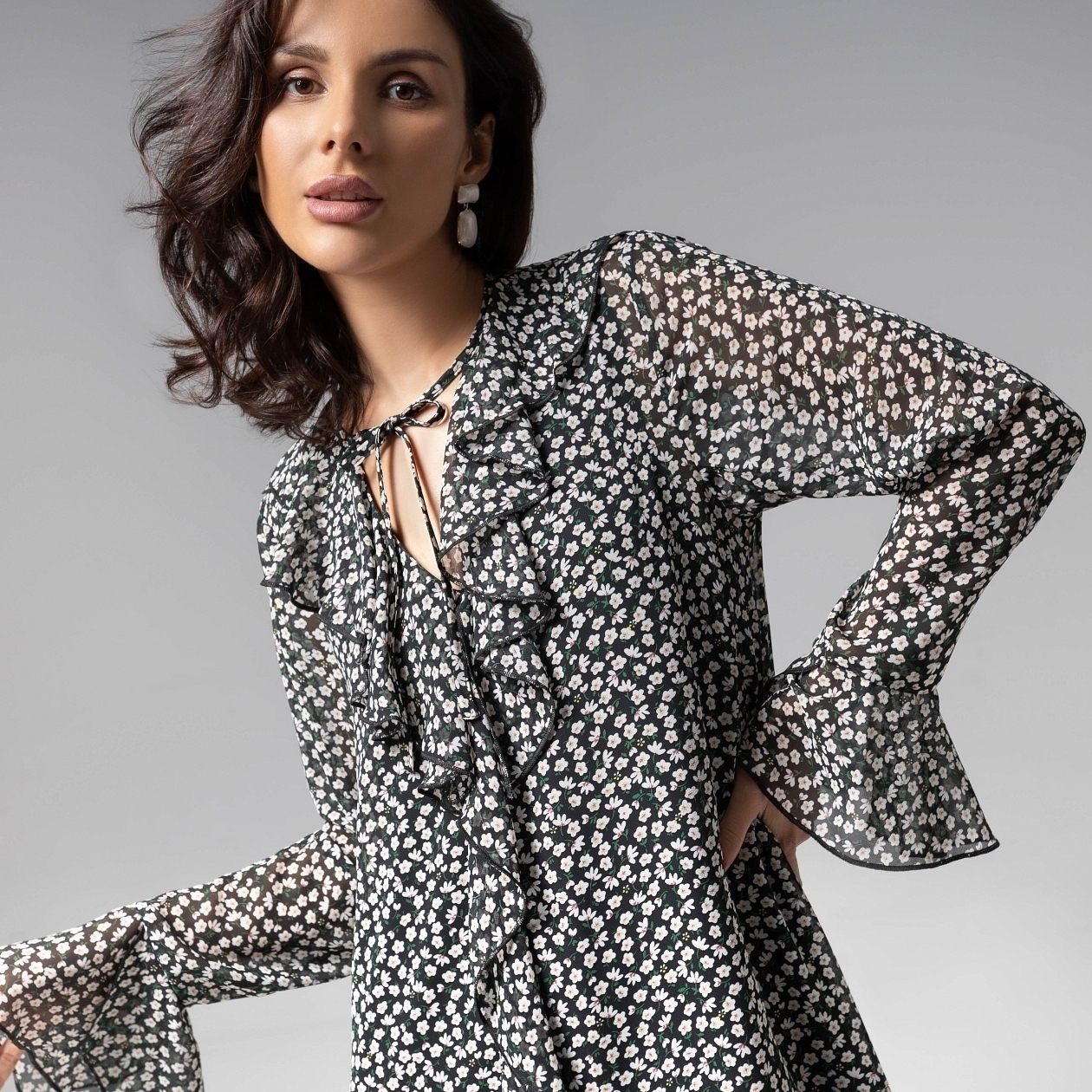 Легкость встречается с изысканностью. Воланы создают динамичный силуэт, а невесомая ткань, словно сотканная из теплого ветра, мягко обволакивает фигуру, подчеркивая её естественную гармонию. Универсальный крой, продуманный до мелочей, создает идеальные пропорции на любом типе фигуры. Воплощенная нежность бохо-эстетики, где каждая складка шепчет о свободе и женственности. Платье в длине до колена. Дополнено завязками в зоне декольте. Изделие с подкладом.