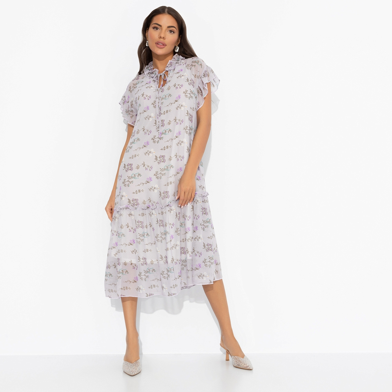«Невидимый магнетизм» делает свою работу тихо. Но на 100%. Романтичный принт, лёгкий силуэт и эффект: почему все оборачиваются? Платье в длине миди. Лаконичные рюши на рукавах изделия и в зоне ворота. Платье с подкладом. За счет кроя изделие отлично смотрится на любом типе фигуры.