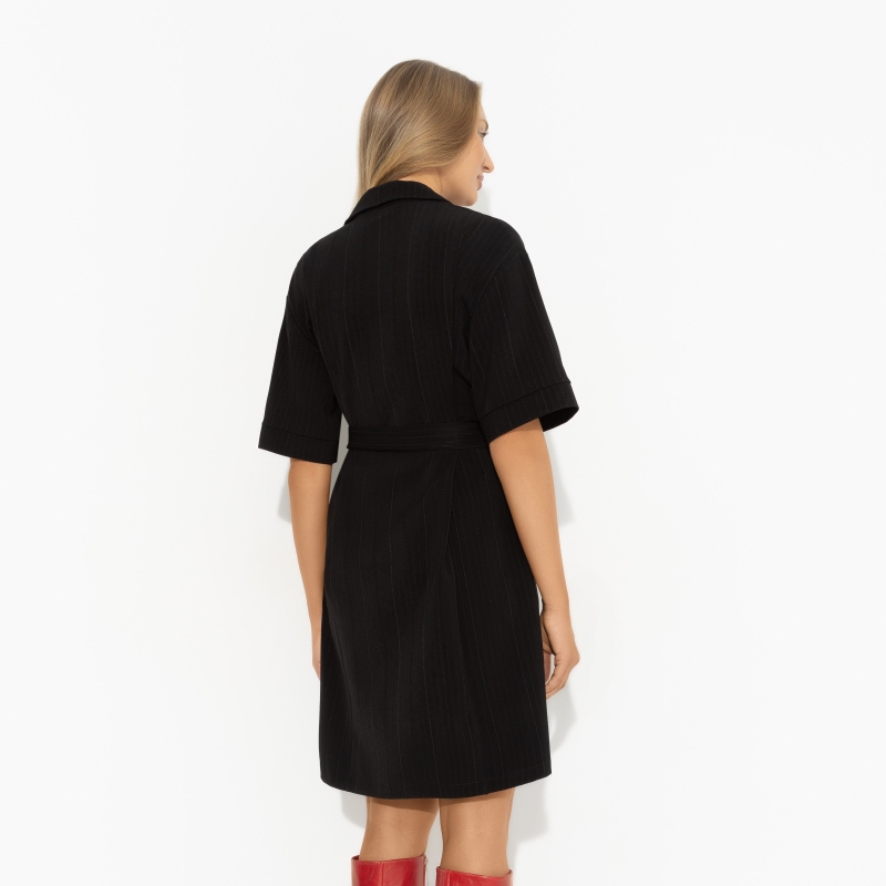 Платье на пуговицах «Идеальный пример (black)» от CHARUTTI — это не просто элемент гардероба, а настоящий символ утончённого стиля и интеллектуального фэшна. Это платье, выполненное из костюмной полоски, идеально подходит для тех, кто ценит элегантность и комфорт. Прямой крой в стиле двубортного жакета с лацканами придаёт образу строгость и изысканность, а мини-длина добавляет нотку игривости. Идеально подходит как вечернее платье женское, оно станет великолепным выбором для особых случаев. Застёжка на пуговицы и пояс в комплекте позволяют создавать индивидуальные акценты, подчёркивая достоинства фигуры.