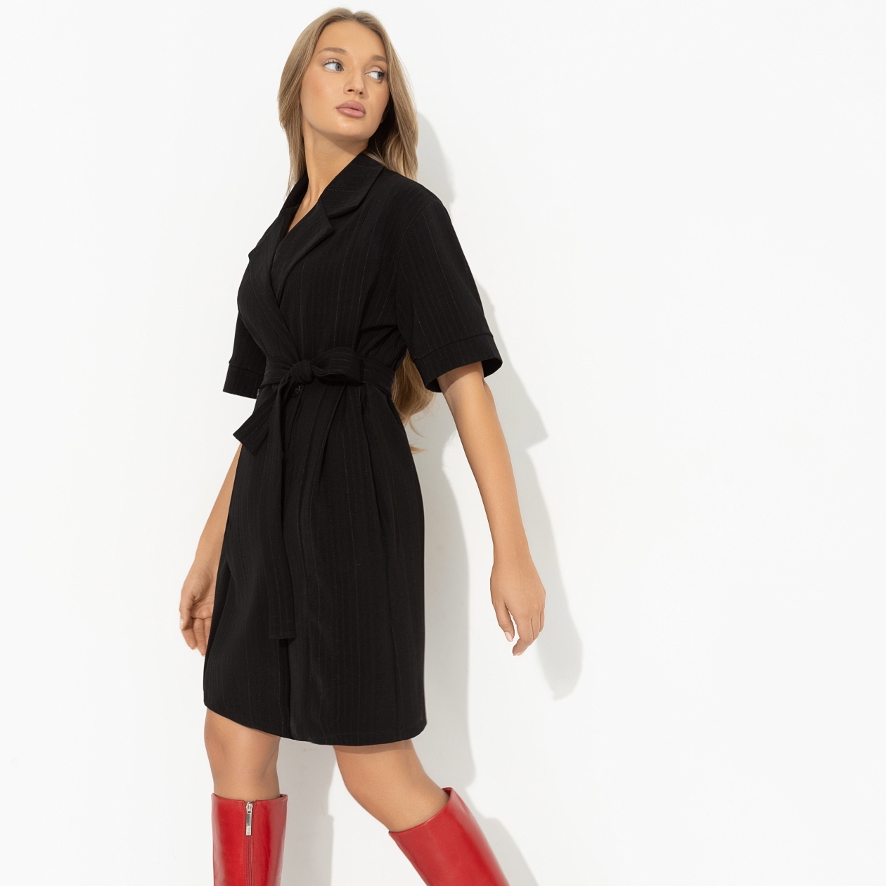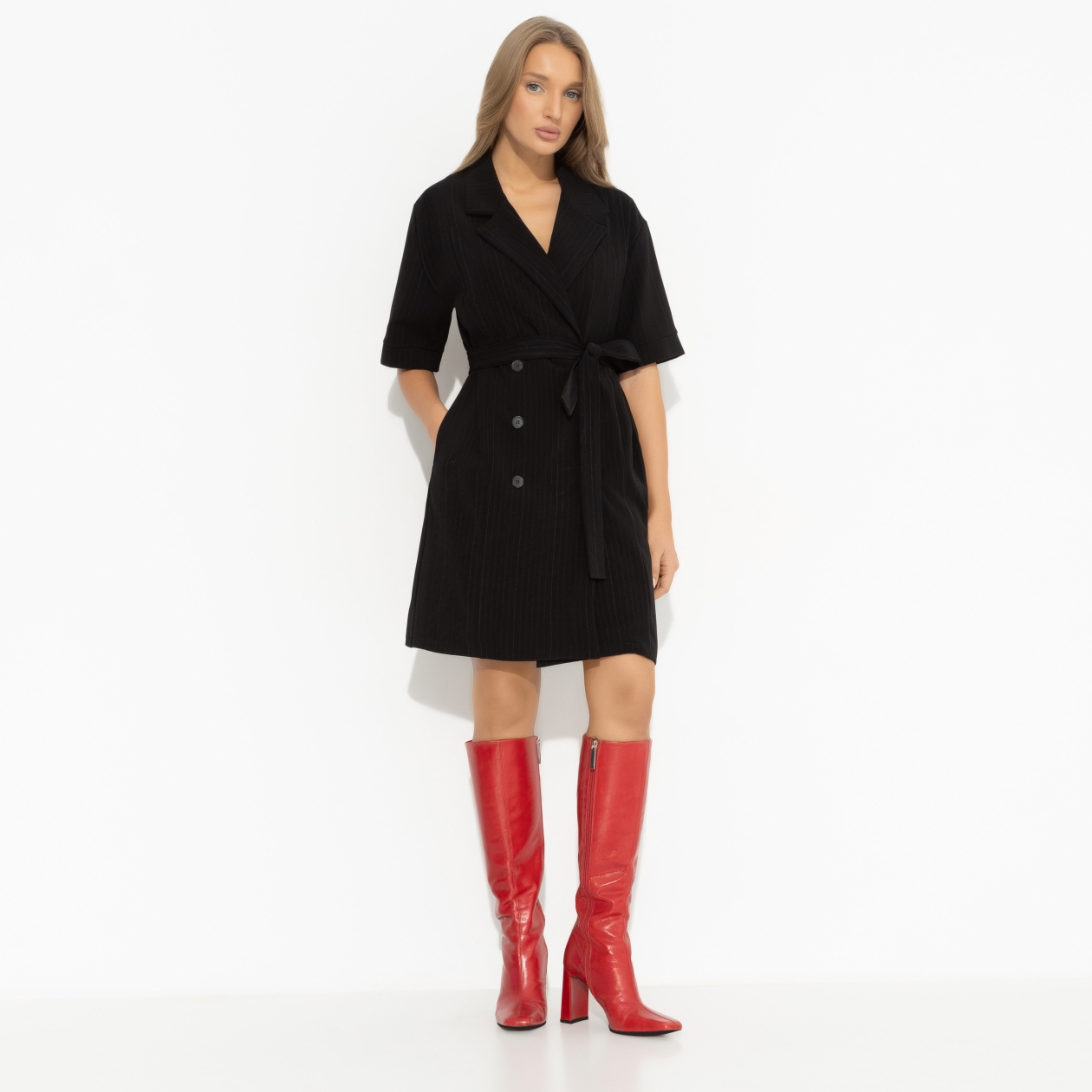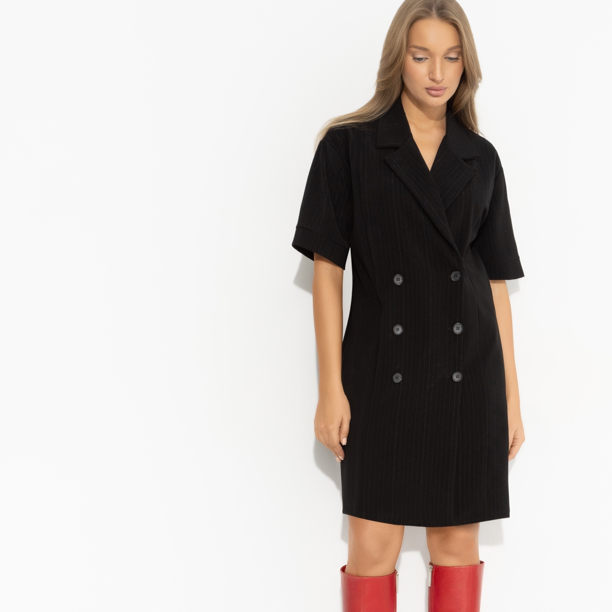 Платье на пуговицах «Идеальный пример (black)» от CHARUTTI — это не просто элемент гардероба, а настоящий символ утончённого стиля и интеллектуального фэшна. Это платье, выполненное из костюмной полоски, идеально подходит для тех, кто ценит элегантность и комфорт. Прямой крой в стиле двубортного жакета с лацканами придаёт образу строгость и изысканность, а мини-длина добавляет нотку игривости. Идеально подходит как вечернее платье женское, оно станет великолепным выбором для особых случаев. Застёжка на пуговицы и пояс в комплекте позволяют создавать индивидуальные акценты, подчёркивая достоинства фигуры.