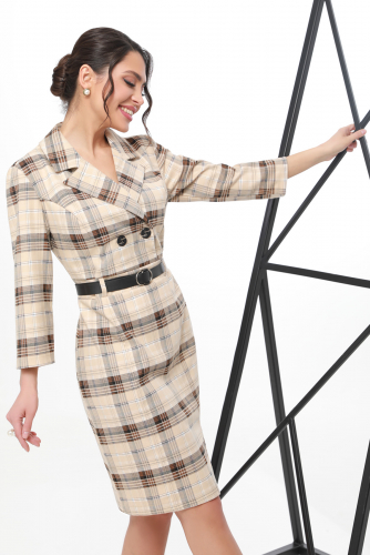 Платье в клетку с отложным воротничком и поясом — стильная модель, которая украсит и разнообразит как деловой, так и повседневный гардероб. Верх по типу жакета с пуговицами образует V-вырез и зрительно удлиняет шею. Приталенный силуэт платья расставляет женственные акценты, а слегка укороченные рукава приоткрывают изящные кисти рук и добавляют легкости. Низ фасона «карандаш» с небольшим разрезом снижает градус строгости, но не выходит за рамки дресс-кода. Принт с шотландской клеткой находится в тренде уже несколько сезонов подряд и не теряет актуальности. Такая расцветка не увеличивает в объемах и безупречно смотрится как на стройных, так и на полных женщинах. Платье-пиджак выполнено из качественной костюмной ткани, сохраняет тепло, не скатывается и не линяет. Чтобы изделие не дало усадку и не деформировалось, рекомендуем стирать его в деликатном режиме при температуре до 30 градусов.