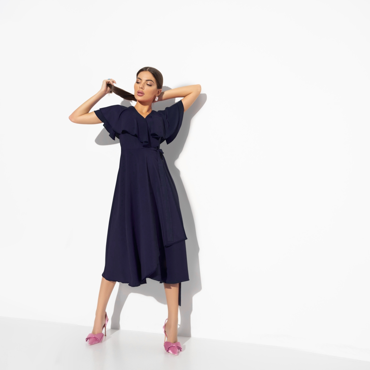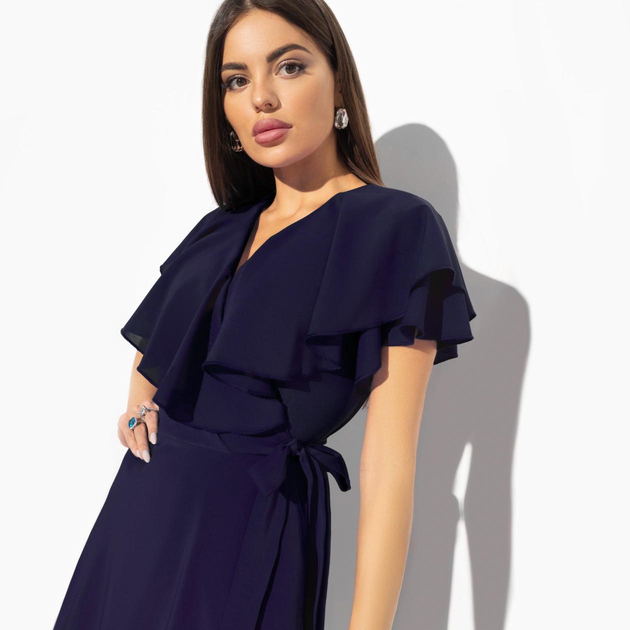Представь себя в роли современной дебютантки, входящей в зал с кокетливой улыбкой. Платье из новой коллекции ЧАРУТТИ воплощает тренд на кокеткор с подиумов Miu Miu и Simone Rocha: пышный волан на плечах, легкий полет ткани – и вот уже все вокруг заворожены твоим обаянием. Платье миди из креп-шифона из легкой, струящейся ткани. Волан-юбка на плечах – хит кокеткора, высокий разрез добавляет движения.