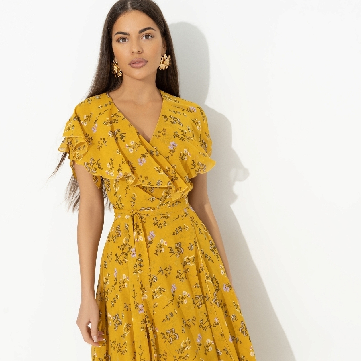 Он знал, что от тебя мало толку на кухне, зато в ресторане ты раскрываешься по максимуму. Звонко смеешься, заряжаешь его женской энергией, вызываешь в нем прилив жизненной силы. В платье CHARUTTI эффект усиливается вдвое. Платье приталенное в длине миди. Глубокий разрез за счет запаха. Есть тонкий пояс на линии талии. Два слоя юбки. Рюши в зоне декольте и по спинке изделия.