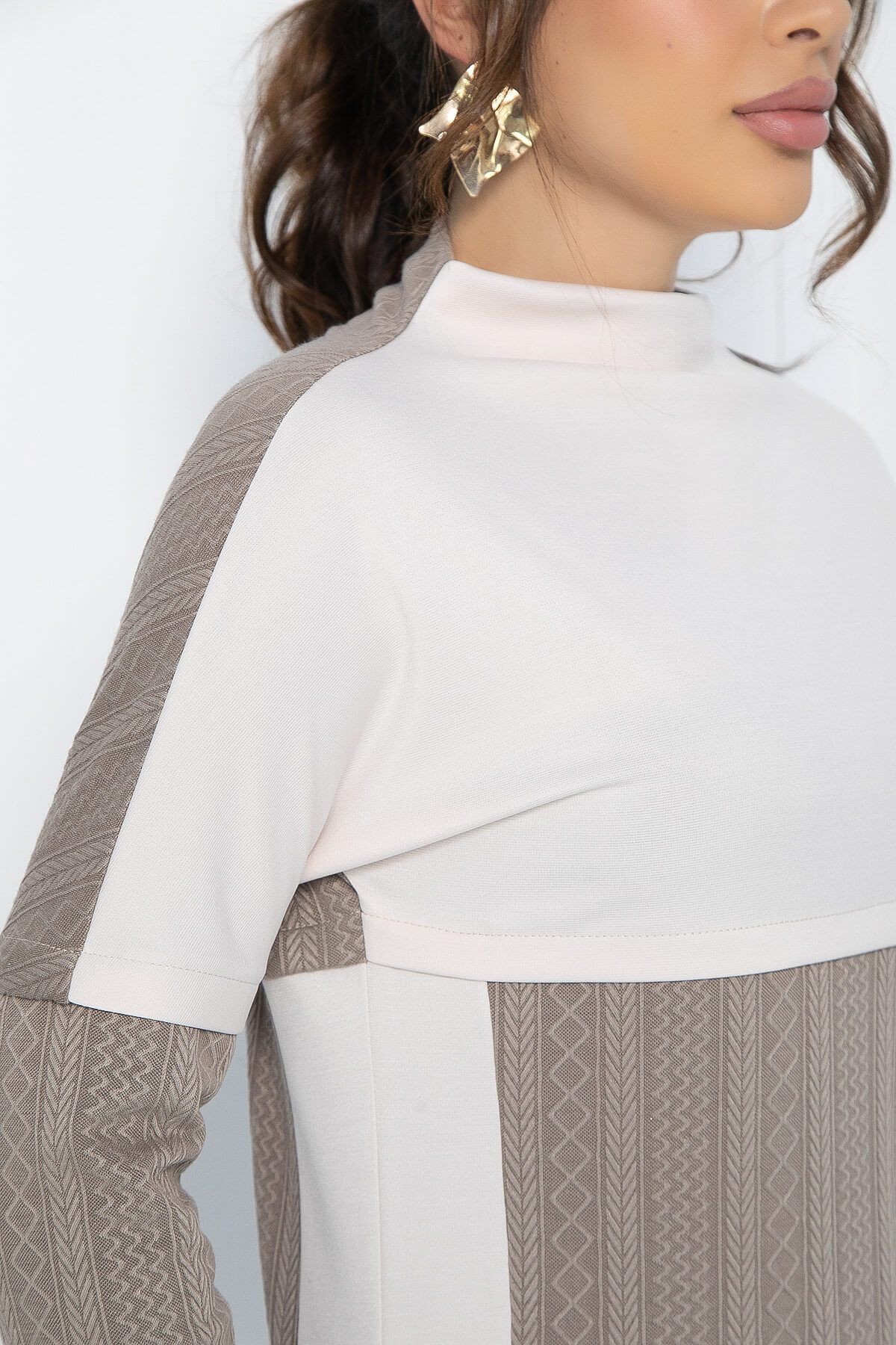 Платье из трикотажа прекрасно подчёркивает фигуру. За счёт использования разных текстур оно выглядит необычно и оригинально. Такой наряд можно надеть и в офис, и в ресторан — он подойдёт для любого случая.