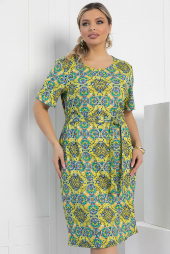 Платье из лёгкой струящейся ткани поможет в создании нарядного образа. Свободный крой платья не будет сковывать движений и позволит чувствовать себя максимально комфортно. Мягкий V-образный вырез горловины красиво открывает зону декольте. Короткий свободный рукав добавит образу лёгкость. Пояс из основной ткани входит в комплект.