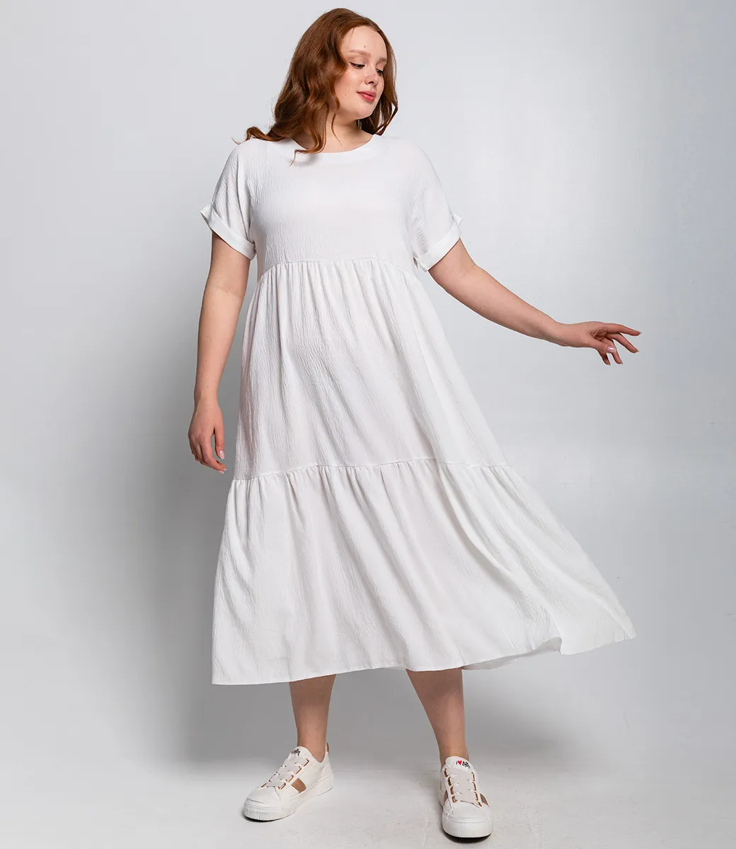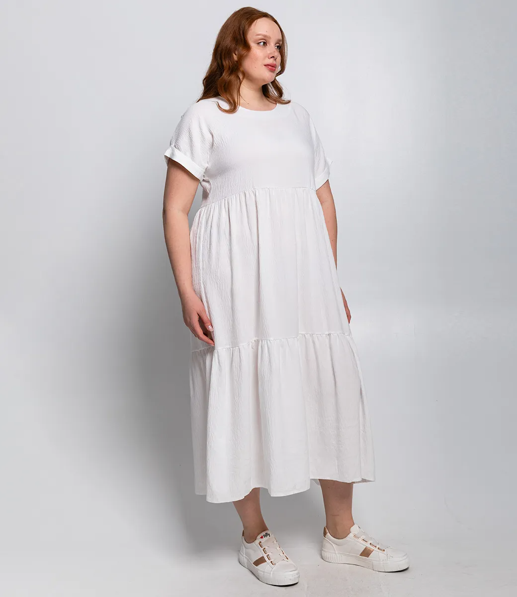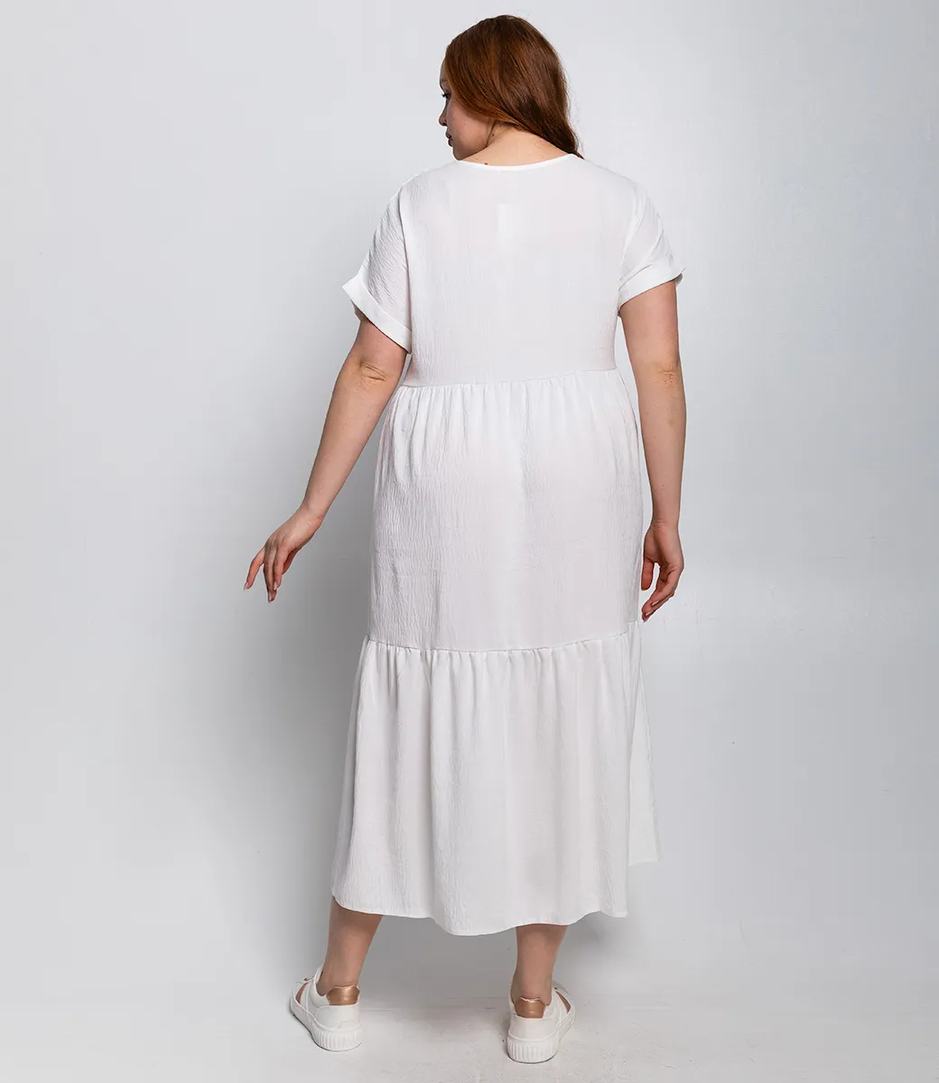 Легкое пллатье модной длины миди представленно в модных, ярких, летних оттенках. Данная модель одинакого хорошо подходит как для повседневного стиля, так и для создания вечернего романтического образа.