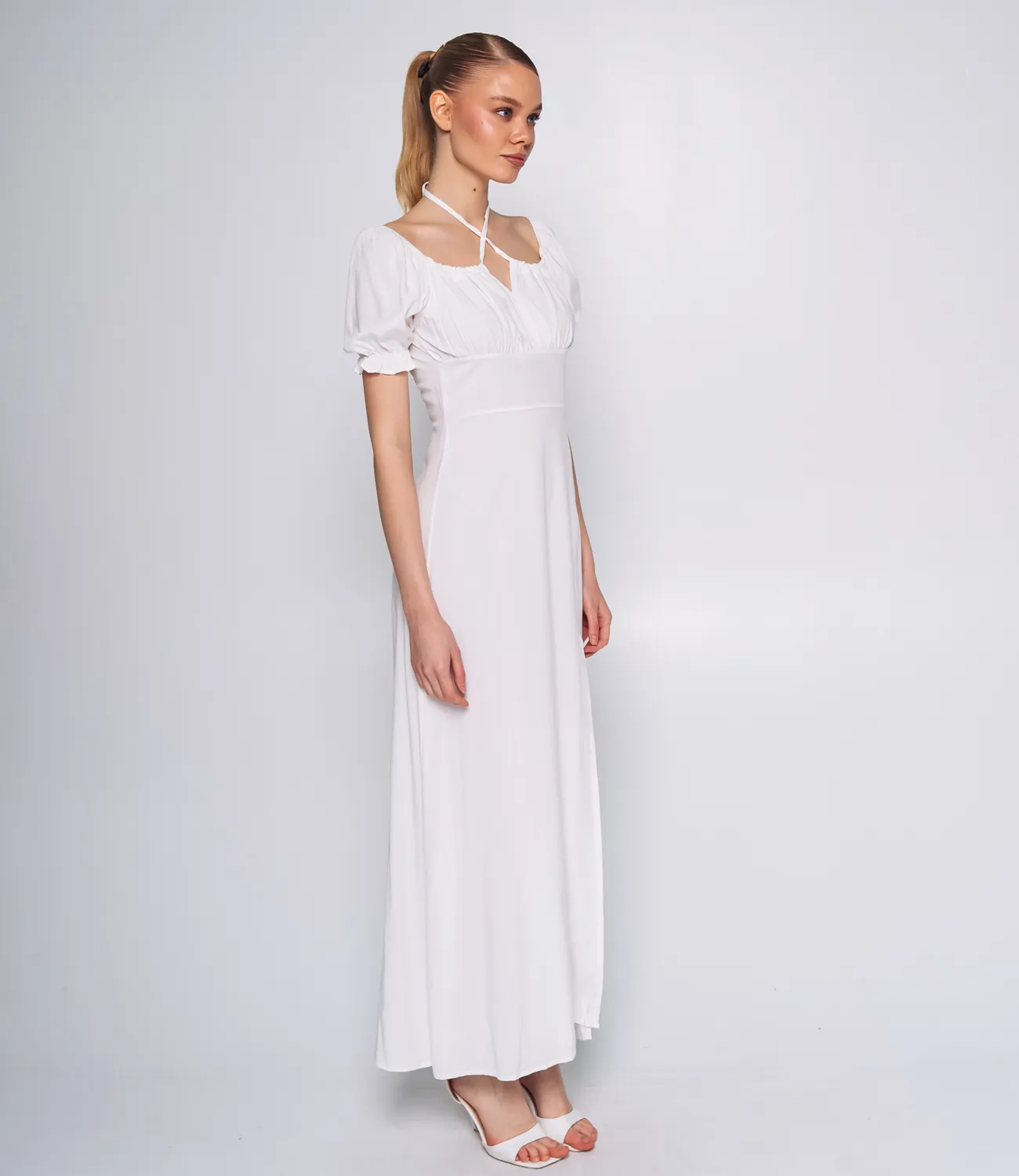 Платье представляет собой изысканную модель в пол с приталенным кроем, выполненным из легкого и дышащего материала, состоящего на 70% из вискозы и 30% из полиэстера. Это идеальное сочетание гарантирует комфортный микроклимат даже в самые жаркие дни. Округлый вырез с затяжкой спереди позволяет регулировать посадку по линии груди, что делает его подходящим для разных типов фигур. Рукава оформлены расклешенными рюшами, что придает образу игривость и легкость. Линия талии подчеркивается, а юбка струится вниз с высоким разрезом спереди, обеспечивая свободу движения и открывая возможность создания стильных образов. Это платье идеально подойдет для летнего гардероба и различных мероприятий, сочетая элегантность и комфорт в одном флаконе. Обратите внимание на насыщенный цвет и фактуру материала, которые полностью соответствуют представленным фотографиям на сайте. Мы понимаем, как важно обеспечить точный выбор размера, поэтому на странице нашего сайта размещена таблица размеров. Воспользовавшись ею, ваши покупательницы смогут без труда обмерить себя и найти идеальный вариант. Предложенная цена на это платье является доступной для оптовых покупателей, что делает его отличным предложением для вашего бизнеса. Подарите своим клиенткам возможность быть стильными и элегантными в этом потрясающем платье, которое прекрасно подчеркнет их индивидуальность и сделает любой образ незабываемым! Рост модели 173, 84-58-89.