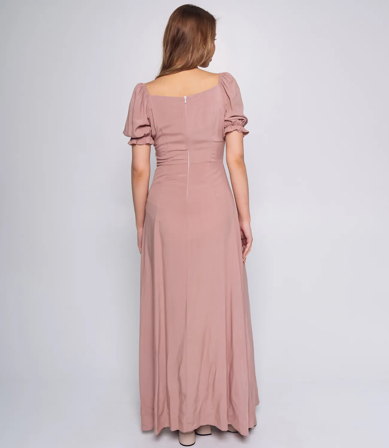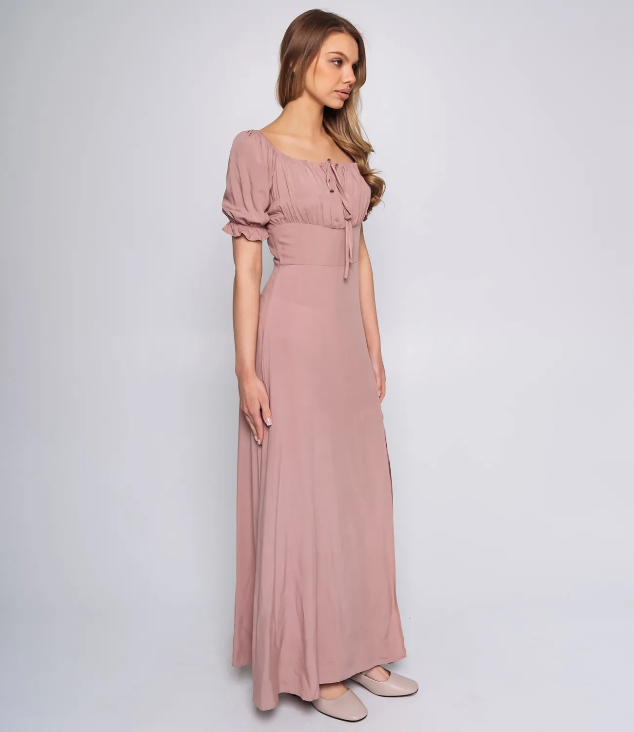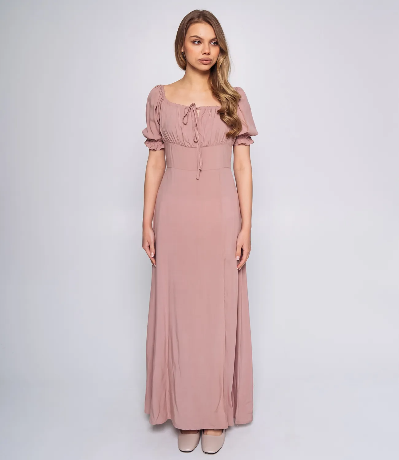 Платье представляет собой изысканную модель в пол с приталенным кроем, выполненным из легкого и дышащего материала, состоящего на 70% из вискозы и 30% из полиэстера. Это идеальное сочетание гарантирует комфортный микроклимат даже в самые жаркие дни. Округлый вырез с затяжкой спереди позволяет регулировать посадку по линии груди, что делает его подходящим для разных типов фигур. Рукава оформлены расклешенными рюшами, что придает образу игривость и легкость. Линия талии подчеркивается, а юбка струится вниз с высоким разрезом спереди, обеспечивая свободу движения и открывая возможность создания стильных образов. Это платье идеально подойдет для летнего гардероба и различных мероприятий, сочетая элегантность и комфорт в одном флаконе. Обратите внимание на насыщенный цвет и фактуру материала, которые полностью соответствуют представленным фотографиям на сайте. Мы понимаем, как важно обеспечить точный выбор размера, поэтому на странице нашего сайта размещена таблица размеров. Воспользовавшись ею, ваши покупательницы смогут без труда обмерить себя и найти идеальный вариант. Предложенная цена на это платье является доступной для оптовых покупателей, что делает его отличным предложением для вашего бизнеса. Подарите своим клиенткам возможность быть стильными и элегантными в этом потрясающем платье, которое прекрасно подчеркнет их индивидуальность и сделает любой образ незабываемым! Рост модели: 168, параметры: 89-63-90.