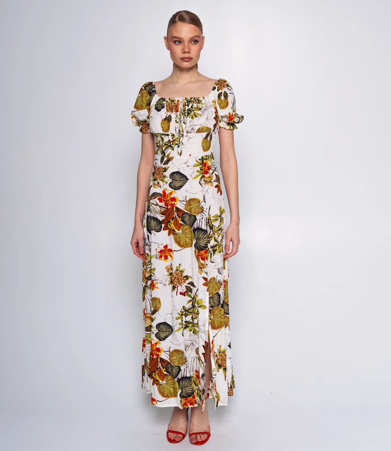 Платье представляет собой изысканную модель в пол с приталенным кроем, выполненным из легкого и дышащего материала, состоящего на 70% из вискозы и 30% из полиэстера. Это идеальное сочетание гарантирует комфортный микроклимат даже в самые жаркие дни. Округлый вырез с затяжкой спереди позволяет регулировать посадку по линии груди, что делает его подходящим для разных типов фигур. Рукава оформлены расклешенными рюшами, что придает образу игривость и легкость. Линия талии подчеркивается, а юбка струится вниз с высоким разрезом спереди, обеспечивая свободу движения и открывая возможность создания стильных образов. Это платье идеально подойдет для летнего гардероба и различных мероприятий, сочетая элегантность и комфорт в одном флаконе. Обратите внимание на насыщенный цвет и яркий принт, которые полностью соответствуют представленным фотографиям на сайте. Мы понимаем, как важно обеспечить точный выбор размера, поэтому на странице нашего сайта размещена таблица размеров. Воспользовавшись ею, ваши покупательницы смогут без труда обмерить себя и найти идеальный вариант. Предложенная цена на это платье является доступной для оптовых покупателей, что делает его отличным предложением для вашего бизнеса. Подарите своим клиенткам возможность быть стильными и элегантными в этом потрясающем платье, которое прекрасно подчеркнет их индивидуальность и сделает любой образ незабываемым! Рост модели 173, 84-58-89.