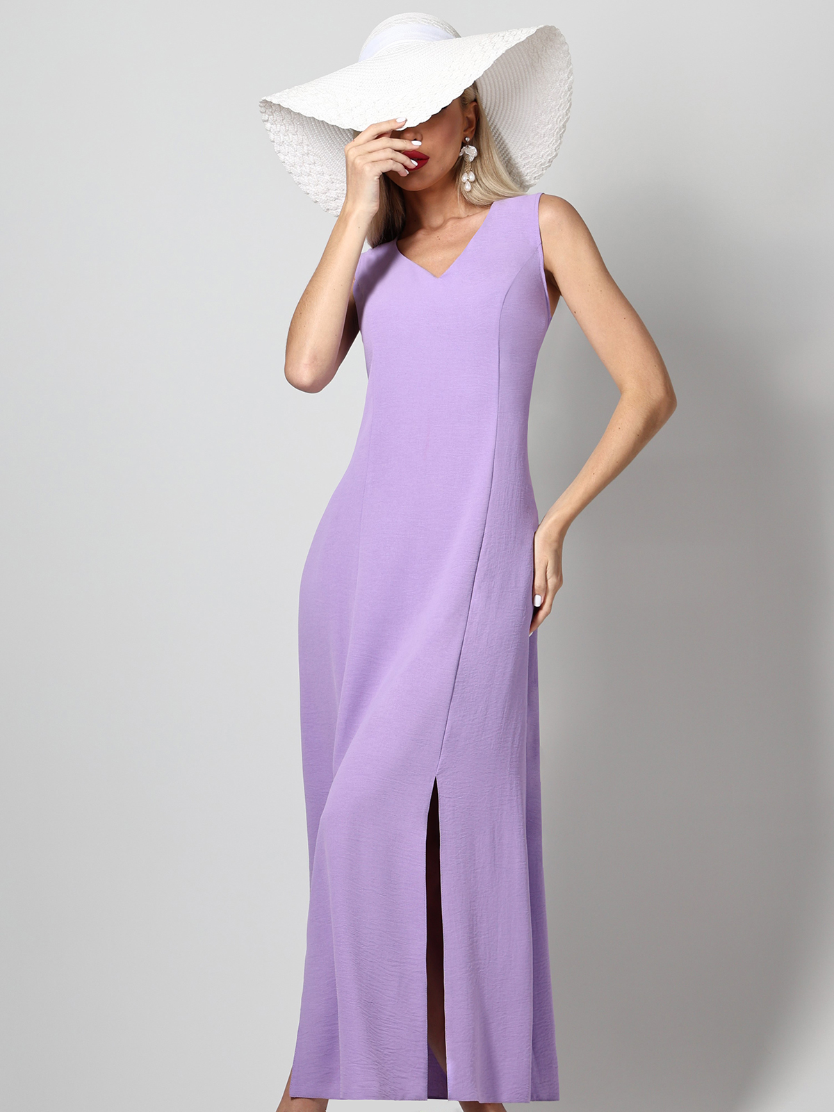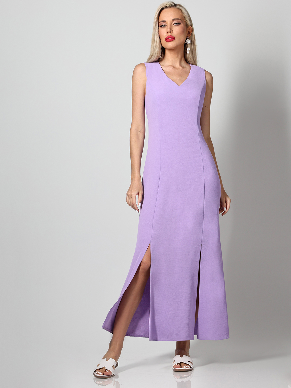 Платье выполнено из легкой плательной ткани, идеальной для жаркого сезона, обеспечивая комфорт и удобство в носке. Яркий цвет делает это платье привлекательным и стильным, подчеркивая индивидуальность и женственность его обладательницы. Молния сбоку и разрезы придают платью изысканный вид и обеспечивают легкость при надевании и снятии, а также свободу движений. V-образный вырез горловины придает образу изысканность и женственность, добавляя элегантности и привлекательности. Отсутствие рукавов делает это платье идеальным для жарких дней, обеспечивая ощущение свежести и легкости. Модель платья - полуприлегающий силуэт, который выгодно подчеркивает фигуру, придавая ей женственные очертания. Уход за этим платьем прост: достаточно провести бережную стирку при 30 градусах, чтобы оно сохраняло свой первоначальный вид и качество на долгое время.