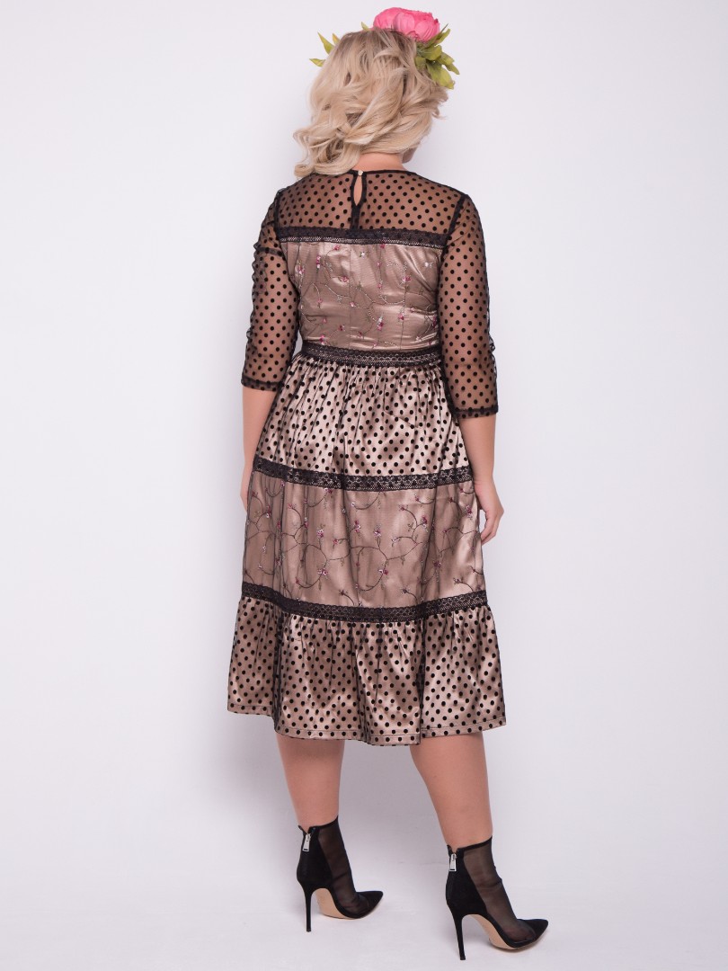 черный Платье прилегающего силуэта из  сетки с принтом “горох“ и “цветы“ на подкладе.
