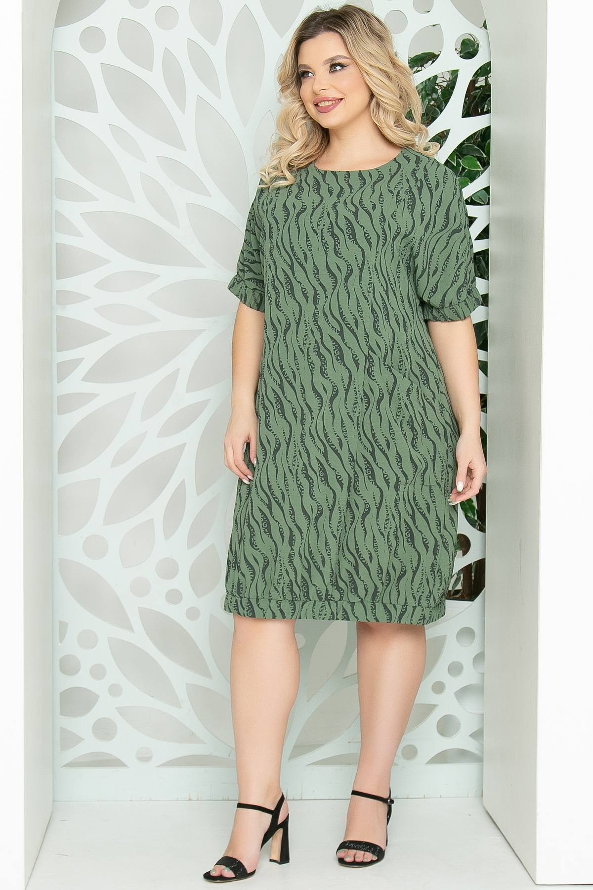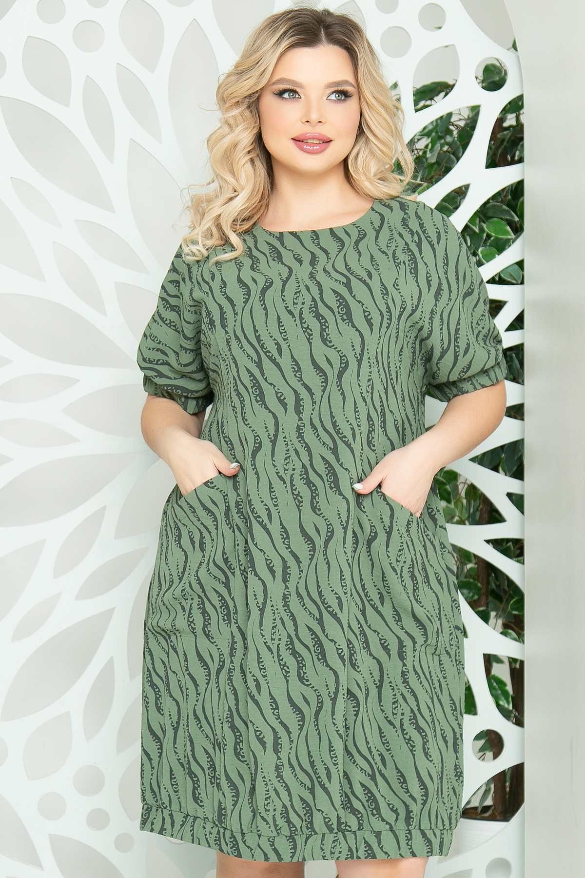 хаки Платье свободного силуэта "баллон" из плательной ткани с рельефной поверхностью