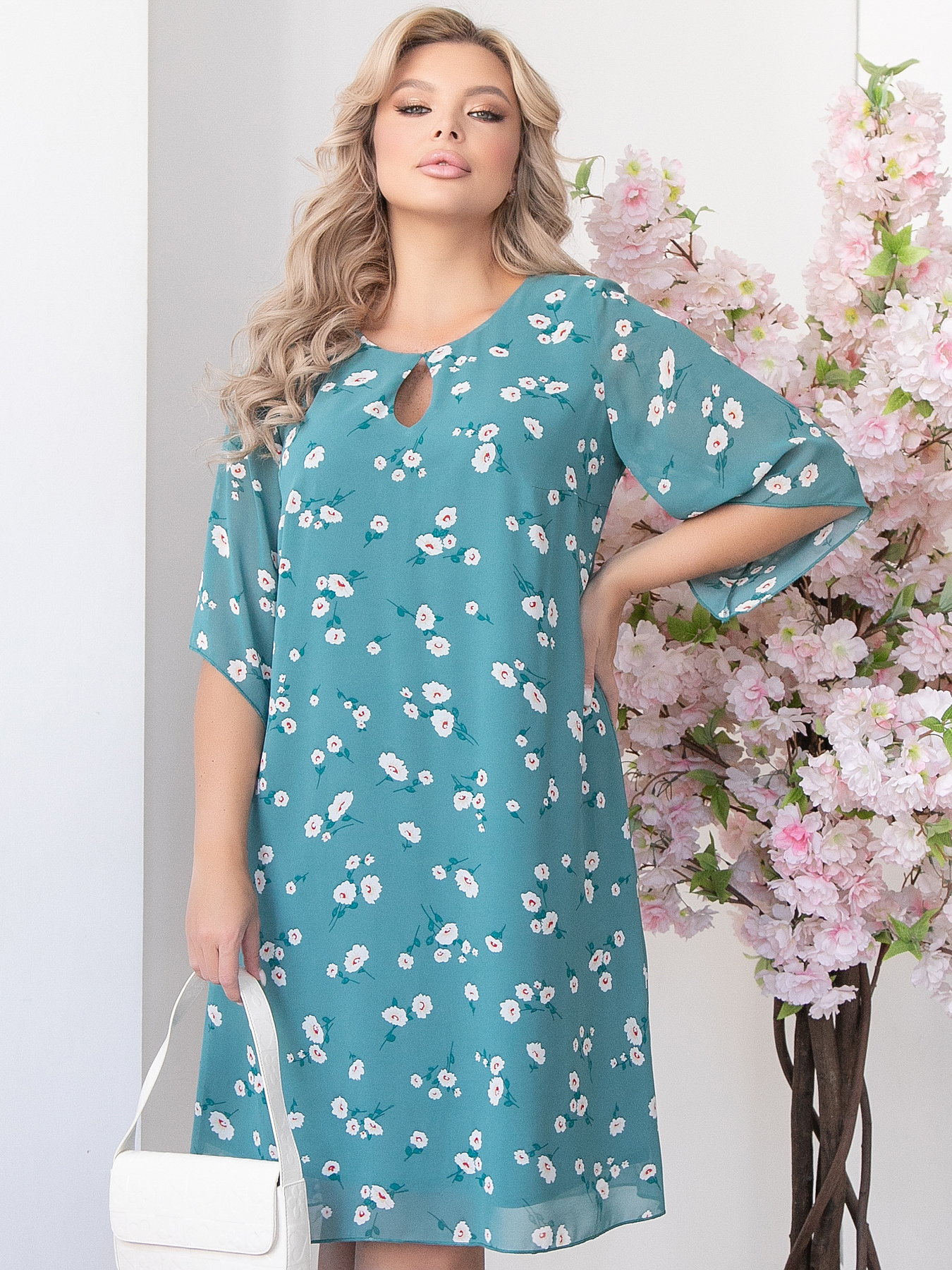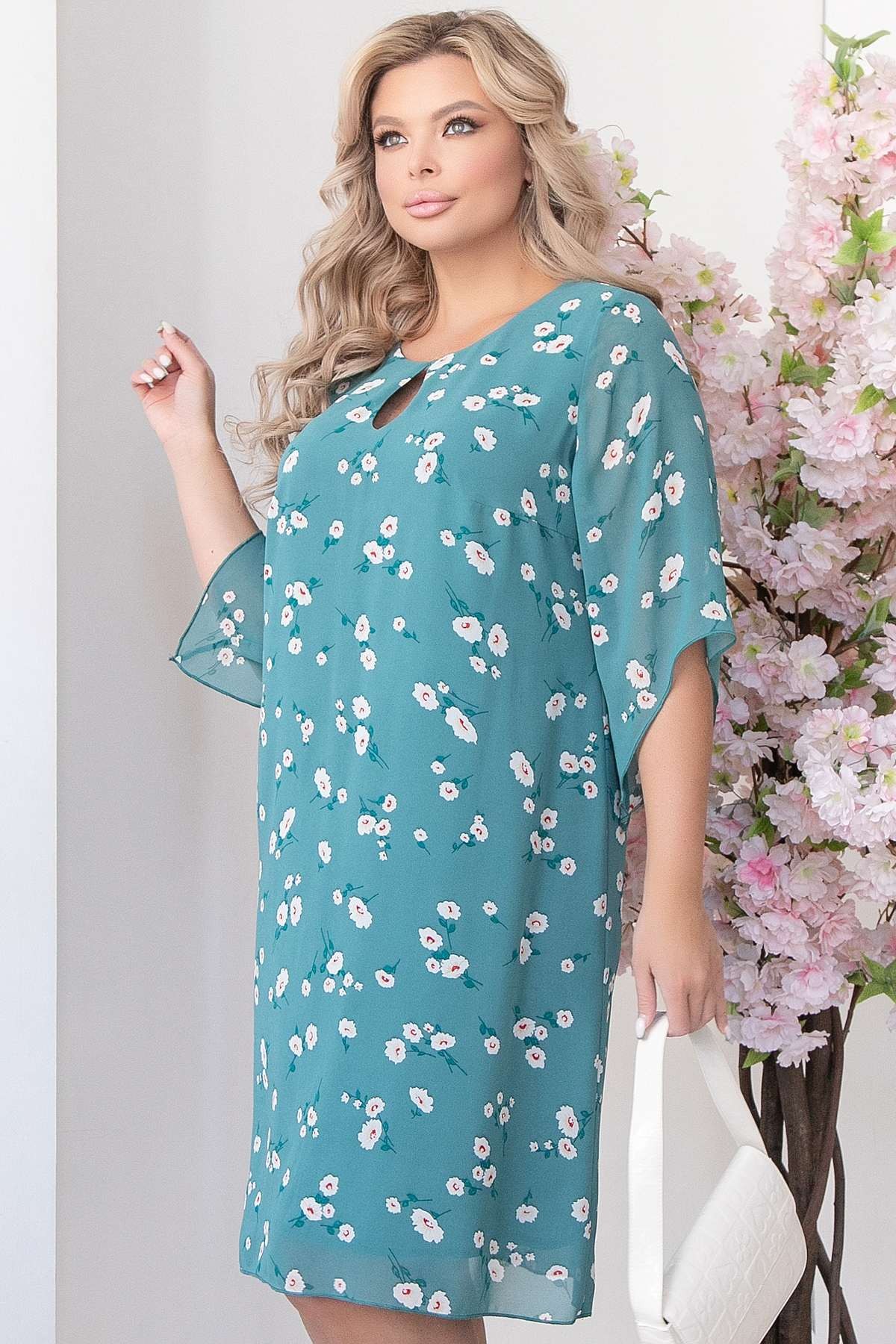 бирюзовый Платье силуэта “трапеция“ из шифона с цветочным принтом  на подкладе.