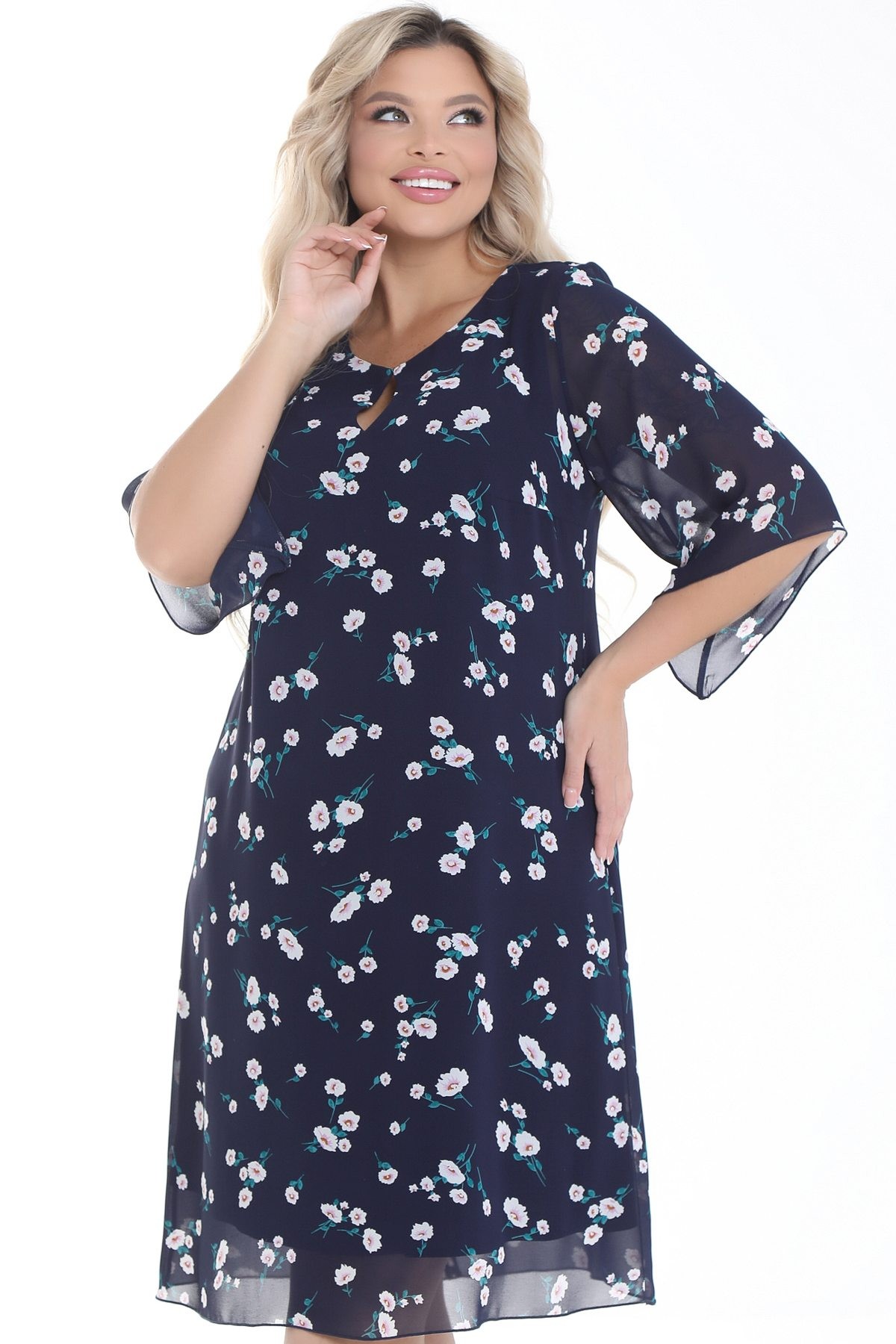 т.синий Платье силуэта “трапеция“ из шифона с цветочным принтом  на подкладе.