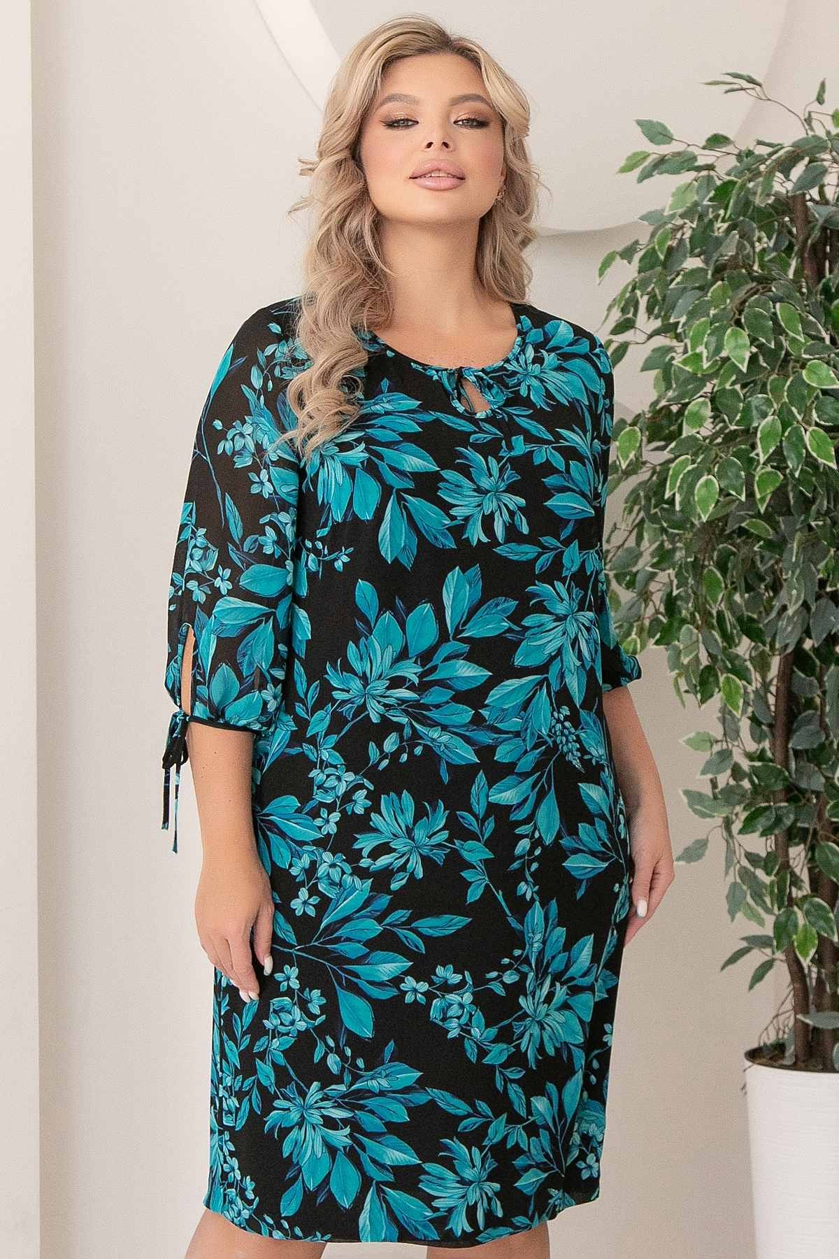 черный;зеленый Женственное платье прямого силуэта из шифона с принтом  “листья“ .