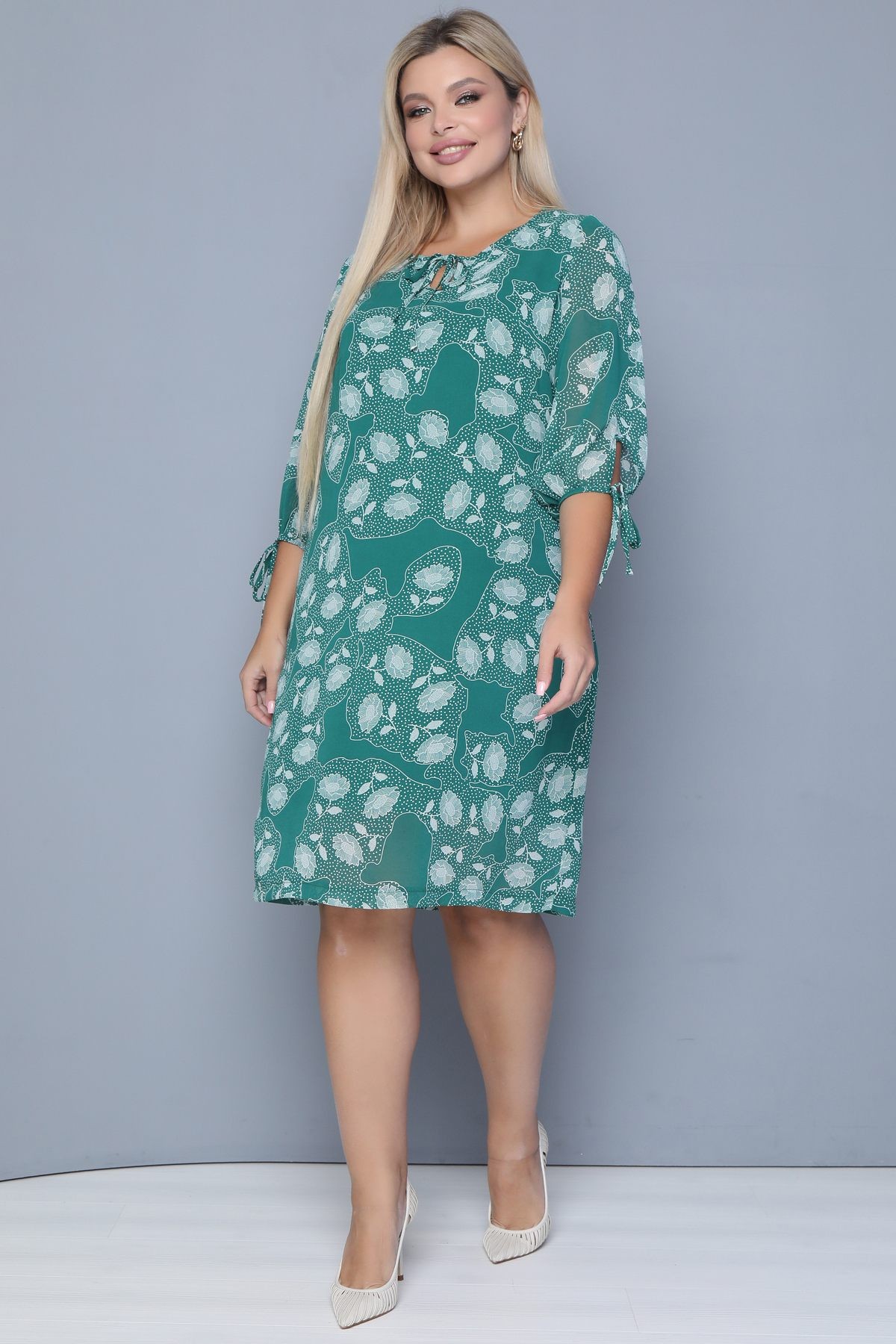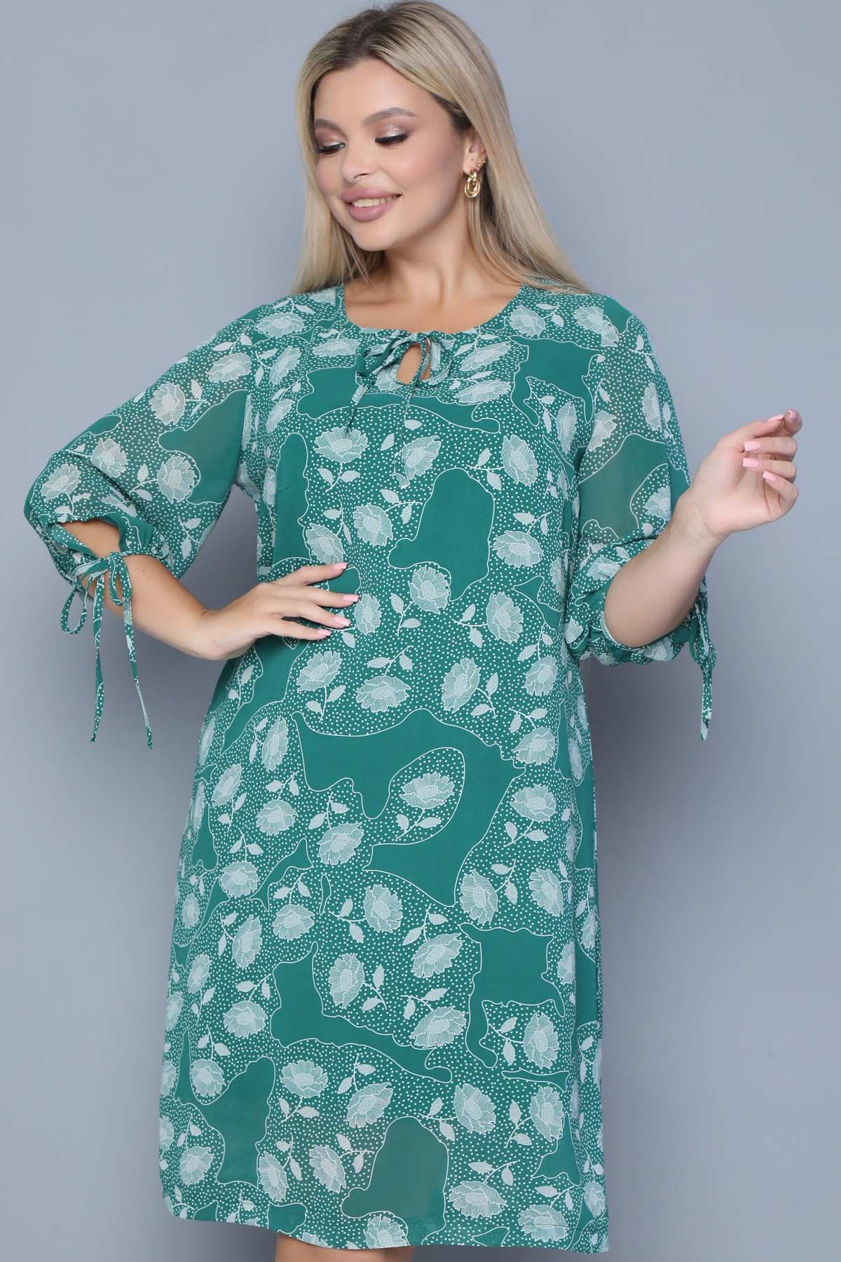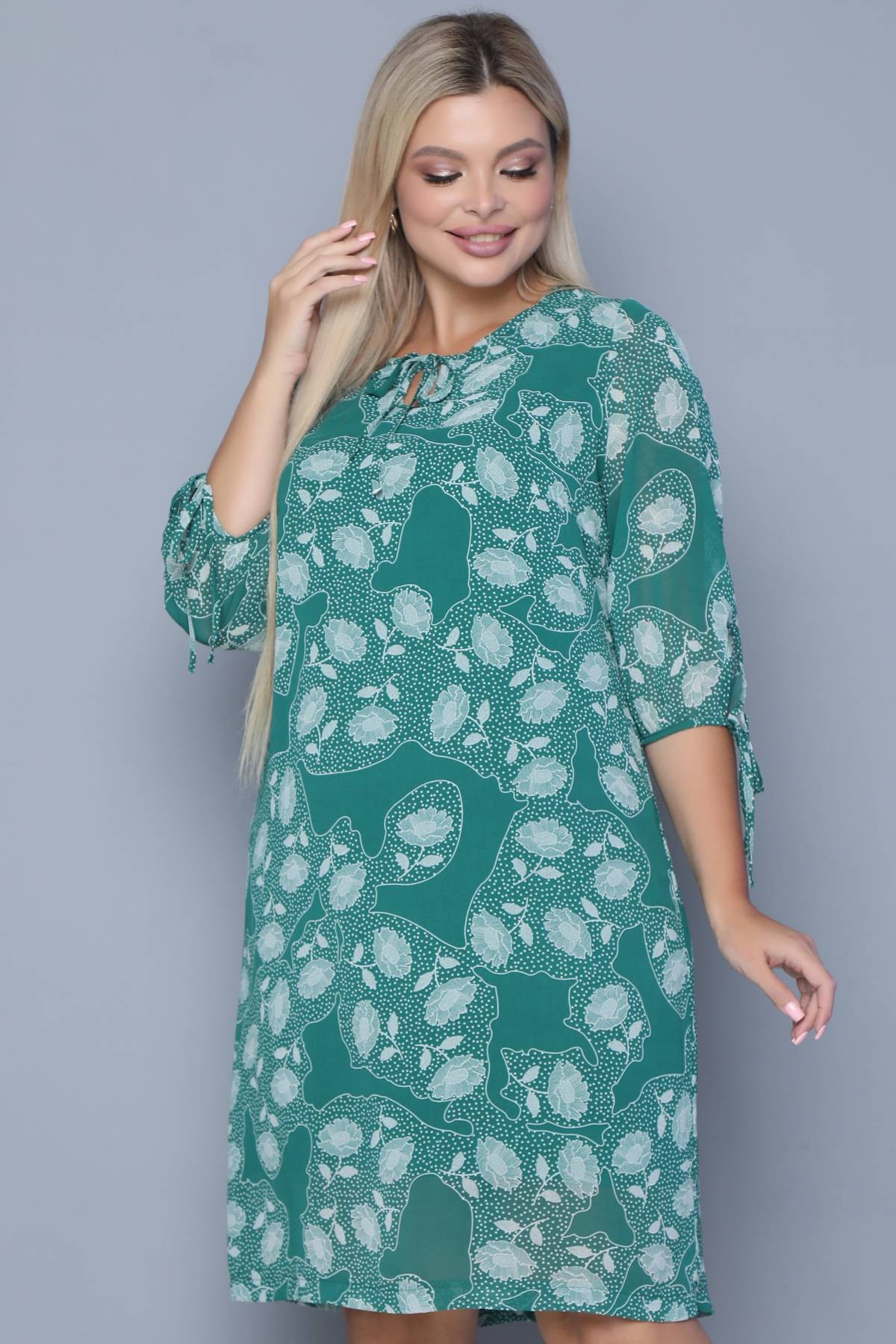 зеленый Женственное платье прямого силуэта из шифона с цветочным принтом.